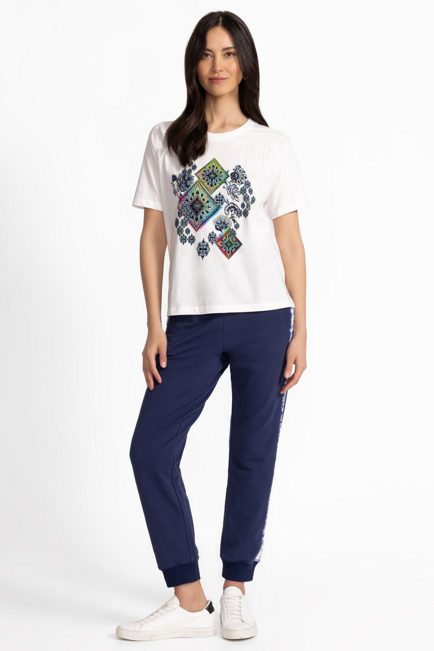 Crafted from 100% breathable cotton, the Bee Active Raglan Graphic Tee features a brilliant geometric pattern in hues of blue. Designed with a crew neckline and raglan sleeves, this relaxed-fit tee is finished with a straight hemline. Pair with the Bee Active Joggers with Side stripes and matching hoodie for a cohesive active ensemble.