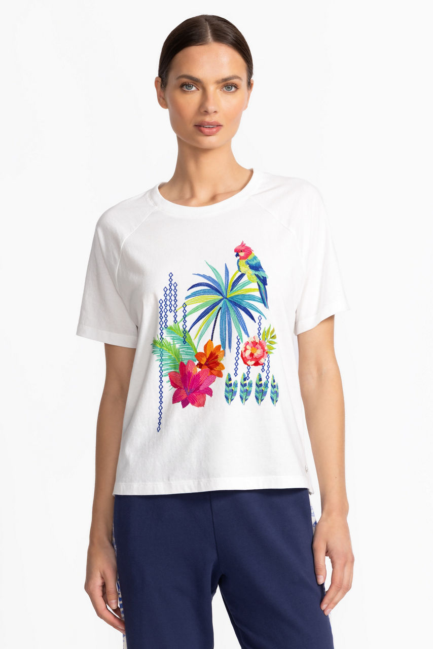 Crafted from 100% breathable cotton, the Bee Active Raglan Graphic Tee features a brilliant pattern combining vibrant tropical flora and fauna. Designed with a crew neckline and raglan sleeves, this relaxed-fit tee is finished with a straight hemline. Pair with Tempest Shorts and wedge sandals for a fresh look.