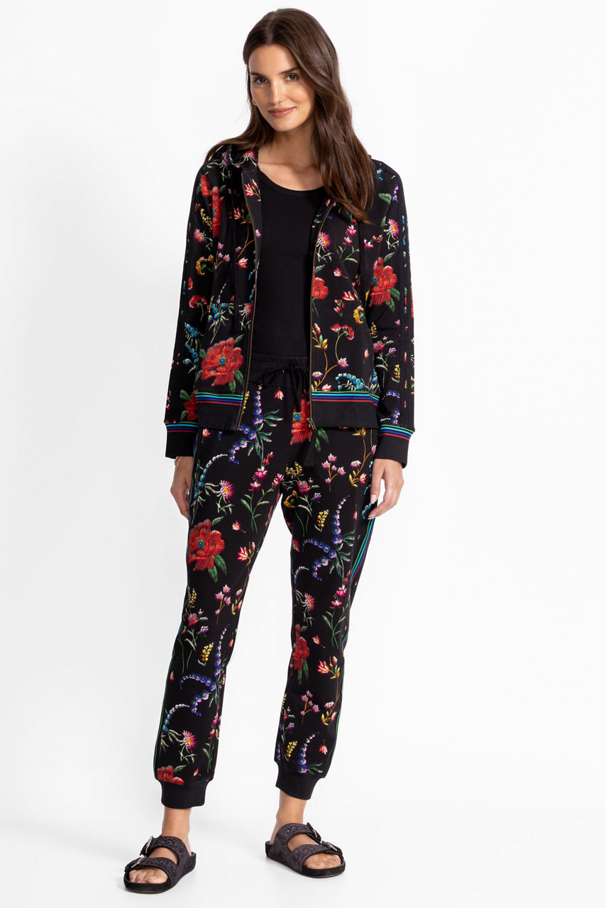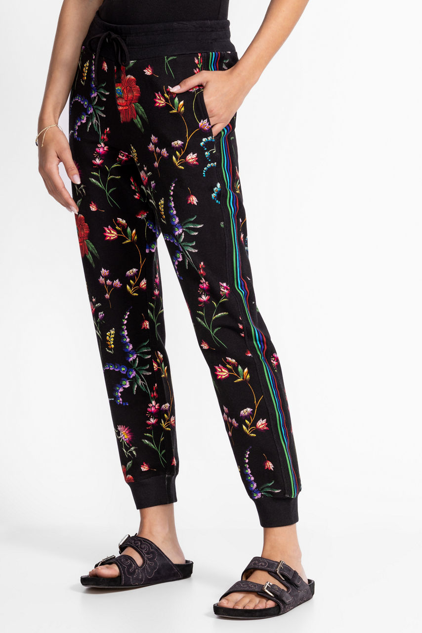 Adorned with a vibrant floral pattern, the Bee Active Relaxed Tape joggers are the perfect blend of elevated style and casual comfort. Featuring an elastic waist with a drawstring for a customizable fit, these unique joggers are finished with slip pockets at the hips and cotton stripes at the outseams. Pair with the Bee Active Zip front hoodie for a perfectly coordinated casual look.