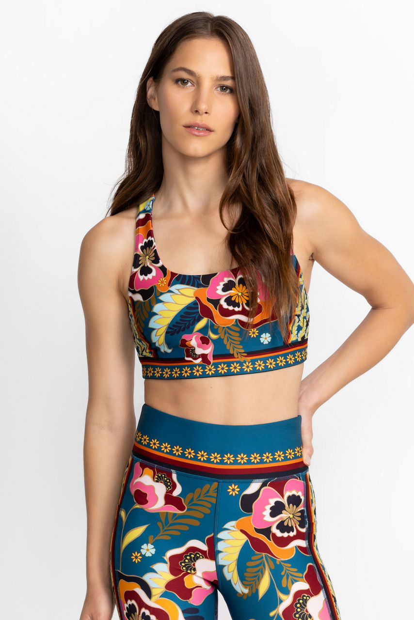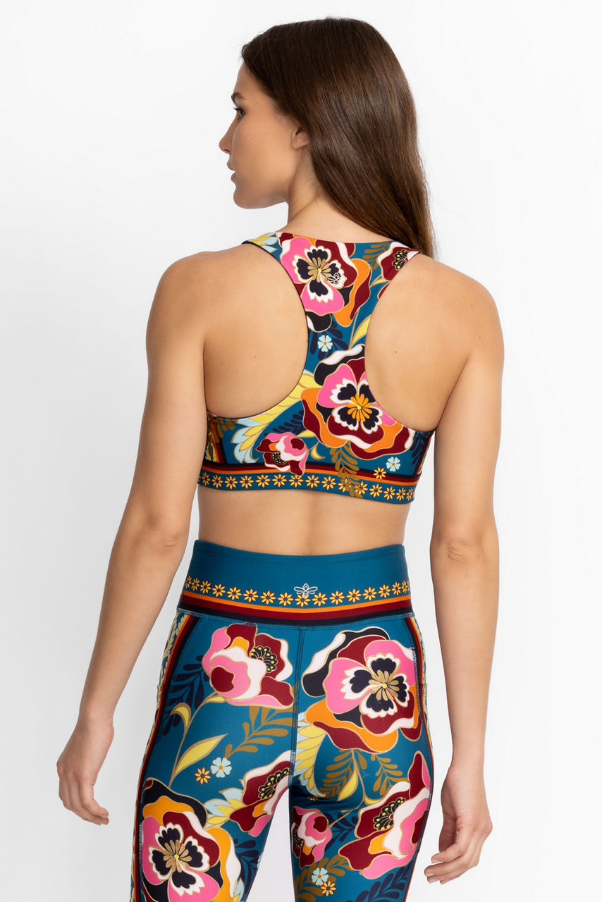 Crafted from a moisture-wicking fabric with a hint of stretch, the Bee Active Reversible Sports Bra is designed for any type of workout. Offering wide shoulder straps and a scoop neckline for comfort, this beautifully adorned bra features a unique pattern with a bold trim for an eye-catching look. Style with the Bee Active Leggings and a classic white button-down for a look that goes easily from the gym to brunch.