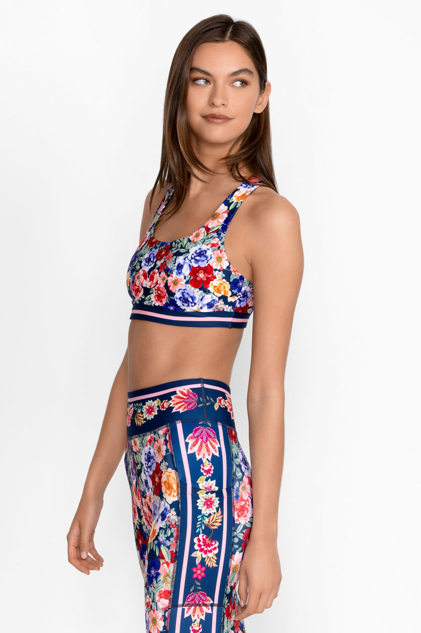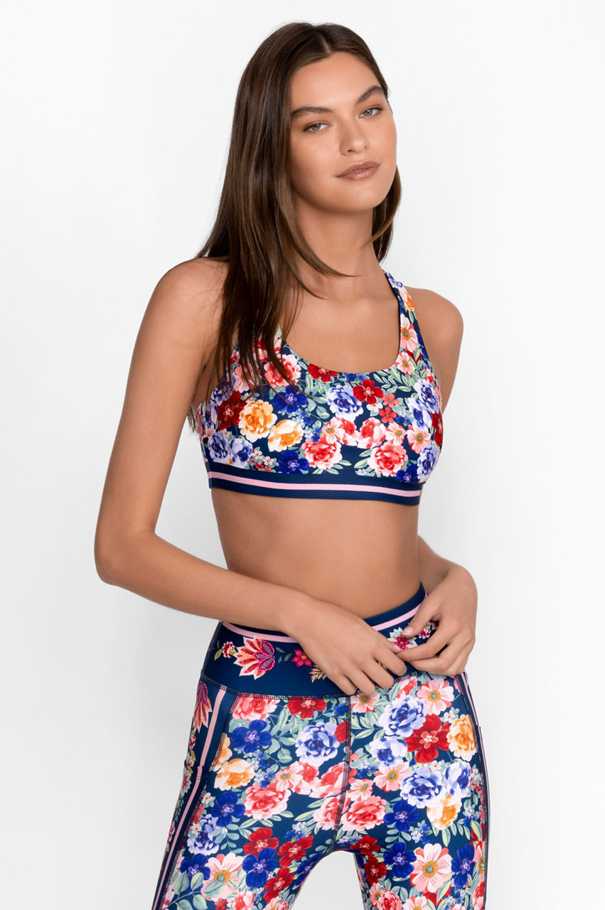 Crafted from a moisture-wicking fabric with a hint of stretch, the Bee Active Reversible Sports Bra is designed for any type of workout. Offering wide shoulder straps and a scoop neckline for comfort, this beautifully adorned bra features a unique pattern with a bold trim for an eye-catching look. Style with the Bee Active Leggings and a classic white button-down for a look that goes easily from the gym to brunch.