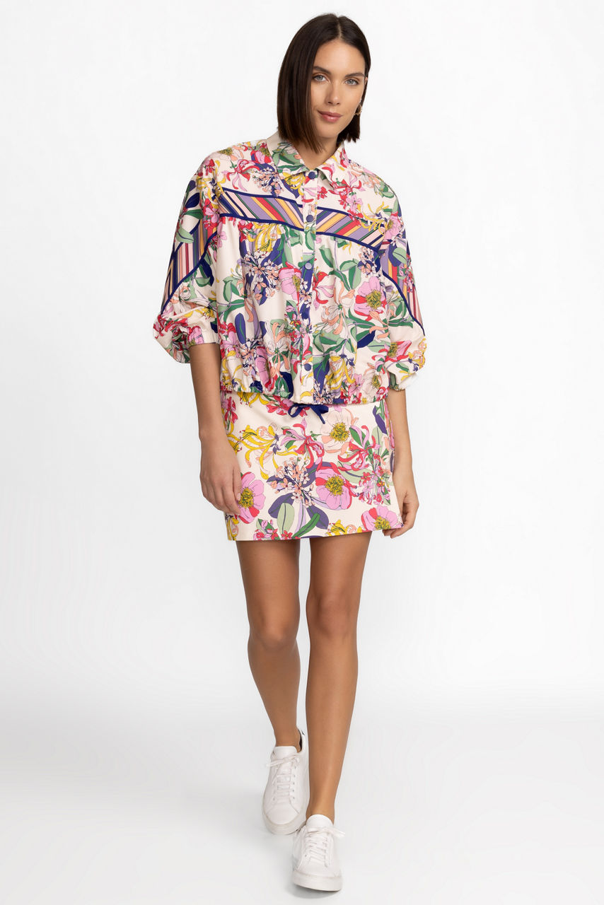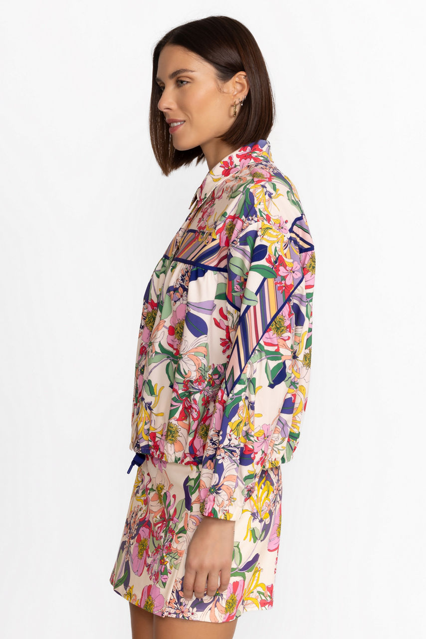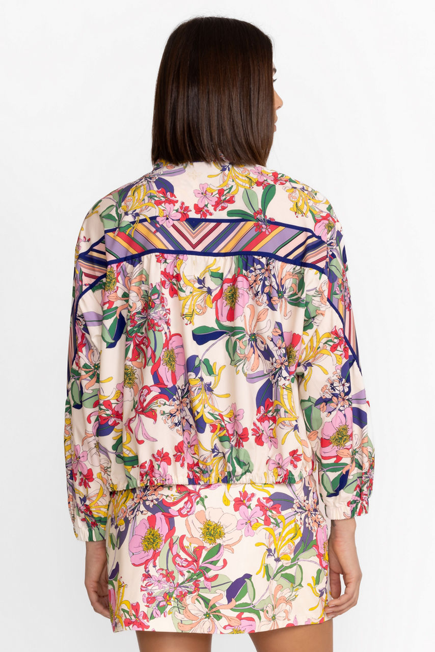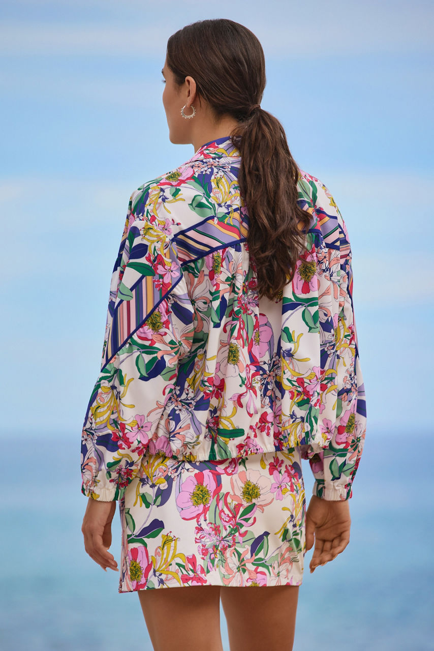 Crafted from a unique recycled blend fabric, the Bee Active Ruched Jacket is lightweight and playful. Featuring a collared neckline with a snap front closure, this jacket is embellished with a vibrant floral pattern and is finished with a drawstring along the hem for a customizable fit. Pair with Bee Active Leggings and a fitted tank for a gym-worthy look.