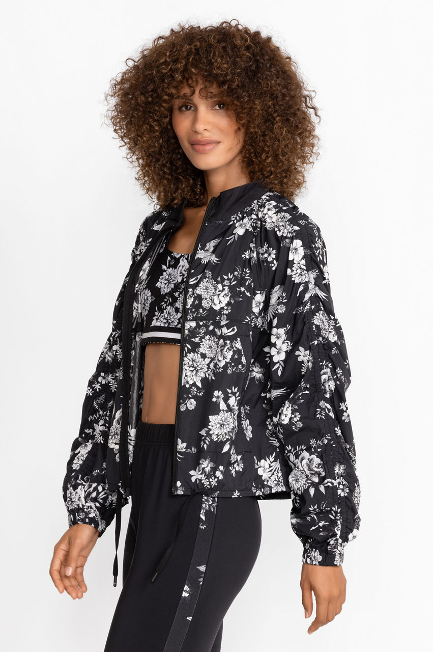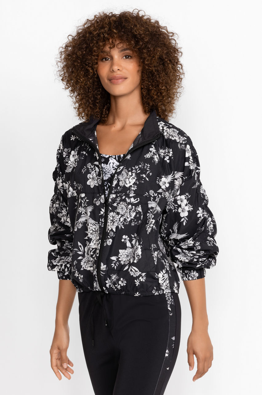 Sustainably crafted from 100% recycled nylon, the Dreamer Ruched Sleeve Parachute Jacket is the link between style and responsibility. Featuring unique ruched sleeves and a vivid floral pattern, this jacket is machine washable making it perfect for everyday working out.