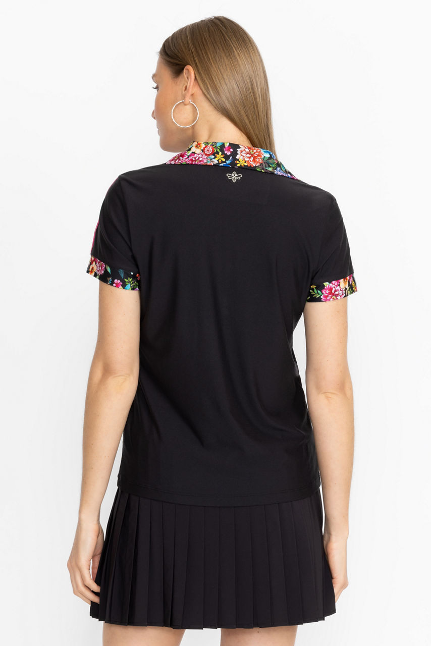An elevated activewear option, the Bee Active Short Sleeve Polo Tee makes and impression on and off the golf course. Featuring a placket button front and collared neckline, this active top is thoughtfully crafted from comfortable and moisture-wicking stretch fabric. Pair with shorts or the Bee Active skirt for tee time or lunch with friends.
