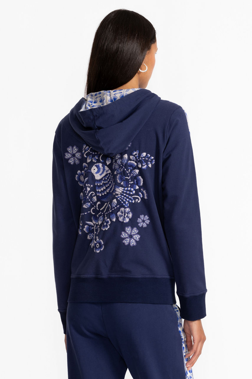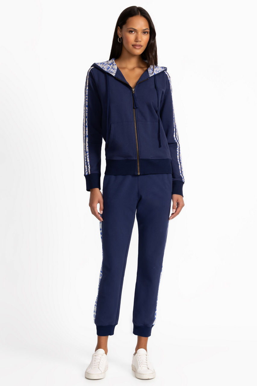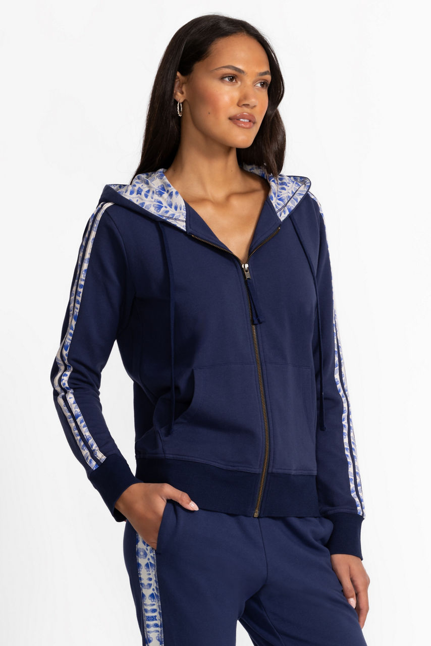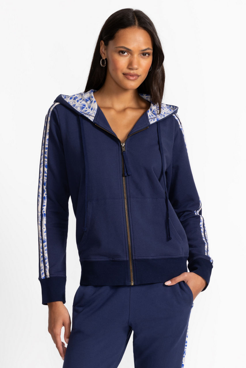 Crafted from a rich breathable cotton with a hint of stretch, the Bee Active Zip Front Hoodie with Tape is embellished at the back with vivid embroidered detailing in hues of blue. Featuring a hooded zip-front and slip pockets at the hips, this deep blue jacket is accented with contrasting panels at the arms. Pair with a classic tee and the Bee Active Joggers for a perfectly coordinated casual ensemble.