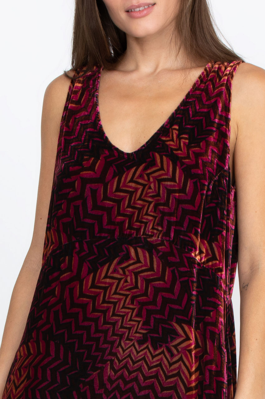 Stand out from the crowd with the gorgeous Belle Velvet Tank Dress. The luxe velvet feel and exciting motif makes it hard to be ignored while wearing this dress. A keyhole and button on the back of the dress provide an exciting embellishment. It even has pockets for convenience. Layer a dark-colored jacket on top and pair it with booties for a chic look.