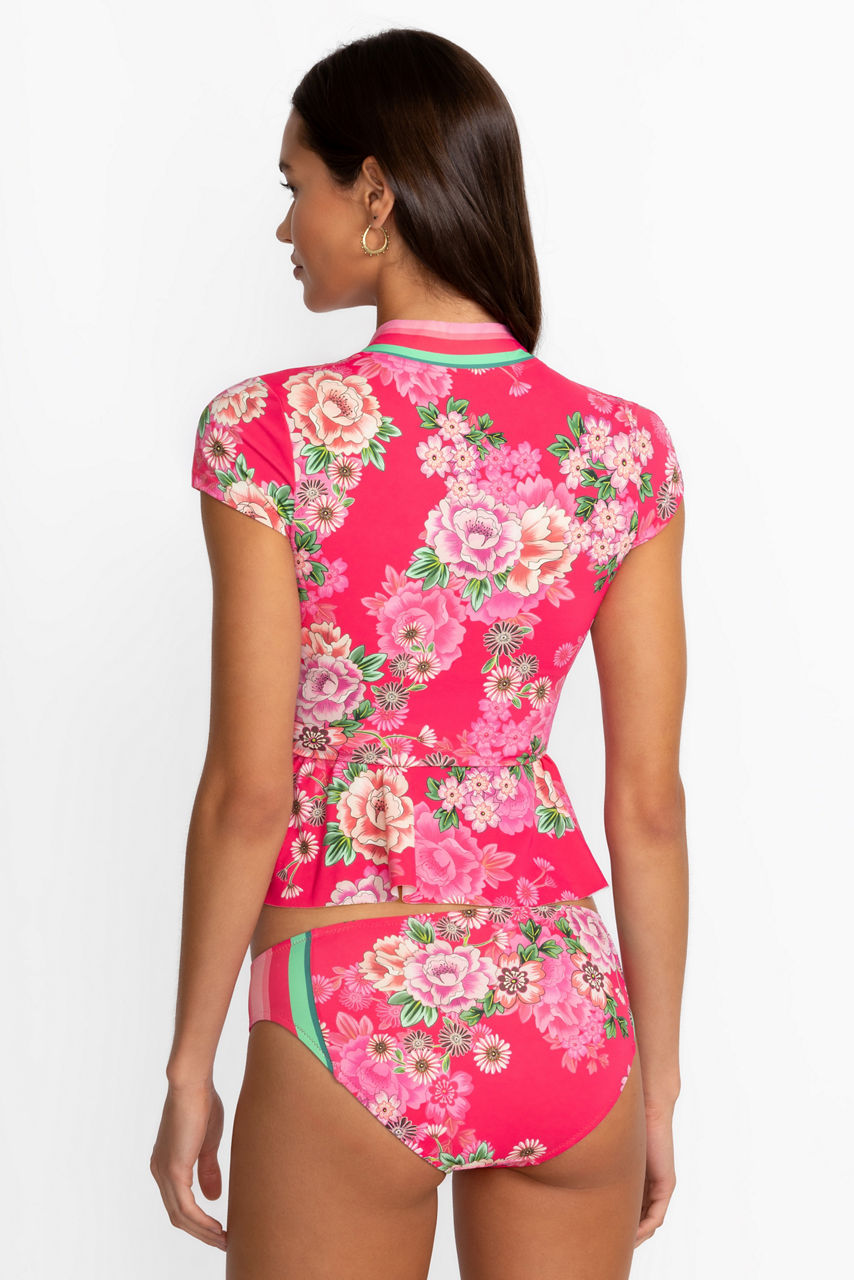 Thoughtfully embellished with bold florals, the Belrose Hipster Bottoms are the perfect finishing piece for your swim ensemble. Featuring a lower cut that sits at the hip line, these vibrant swim bottoms are finished with a coordinating striped accent at the sides. Pair with the Drawcord Bikini Top for a bold resort-ready look.