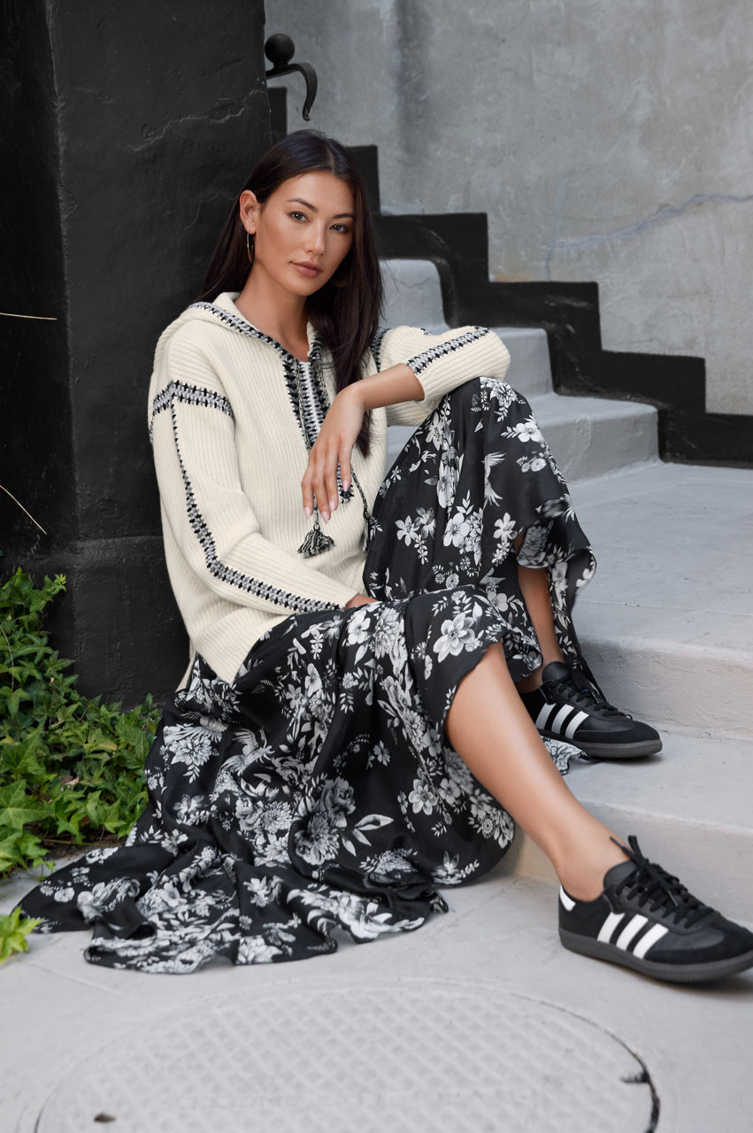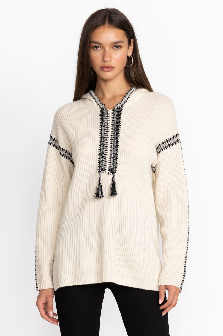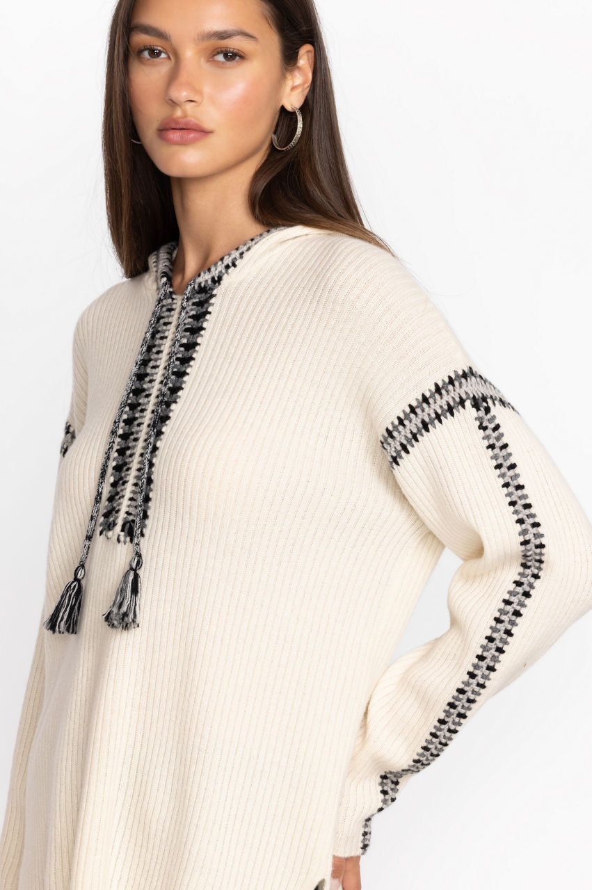 Serving up the epitome of casual comfort, the Beltran Multi Color Whipstitch Baja is the perfect layering piece for cooler temperatures. Crafted from a cozy wool and cashmere blend, this tunic length pullover is an excellent choice for an evening on the beach. Wear over a comfy tank and shorts, or as a swim cover-up on breezy nights.