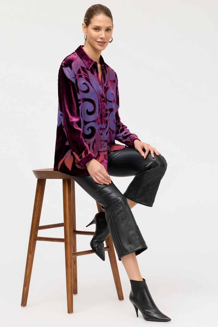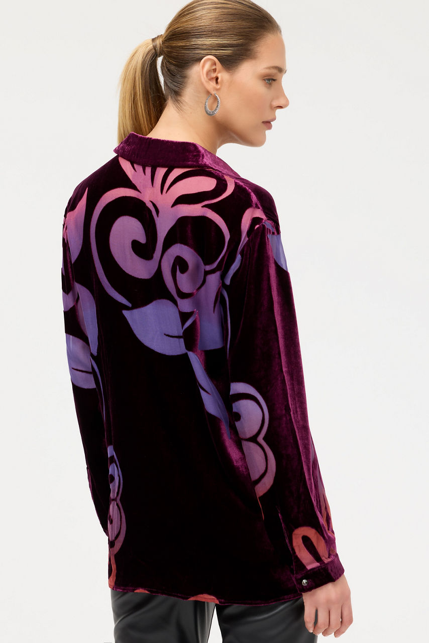 Crafted from a rich silk blend, the Bess Button Down Shirt is adorned with a bold scrolling pattern in vibrant hues. Designed with a classic button-front and long sleeves, this eye-catching, slip-lined shirt is finished with a straight hemline. Pair with silk trousers and loafers for an elevated getaway ensemble.