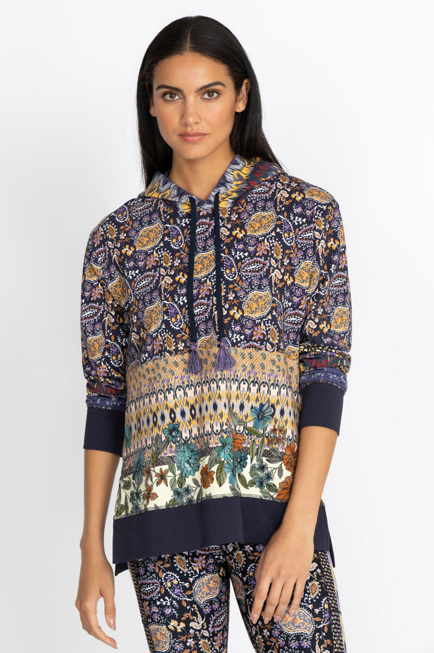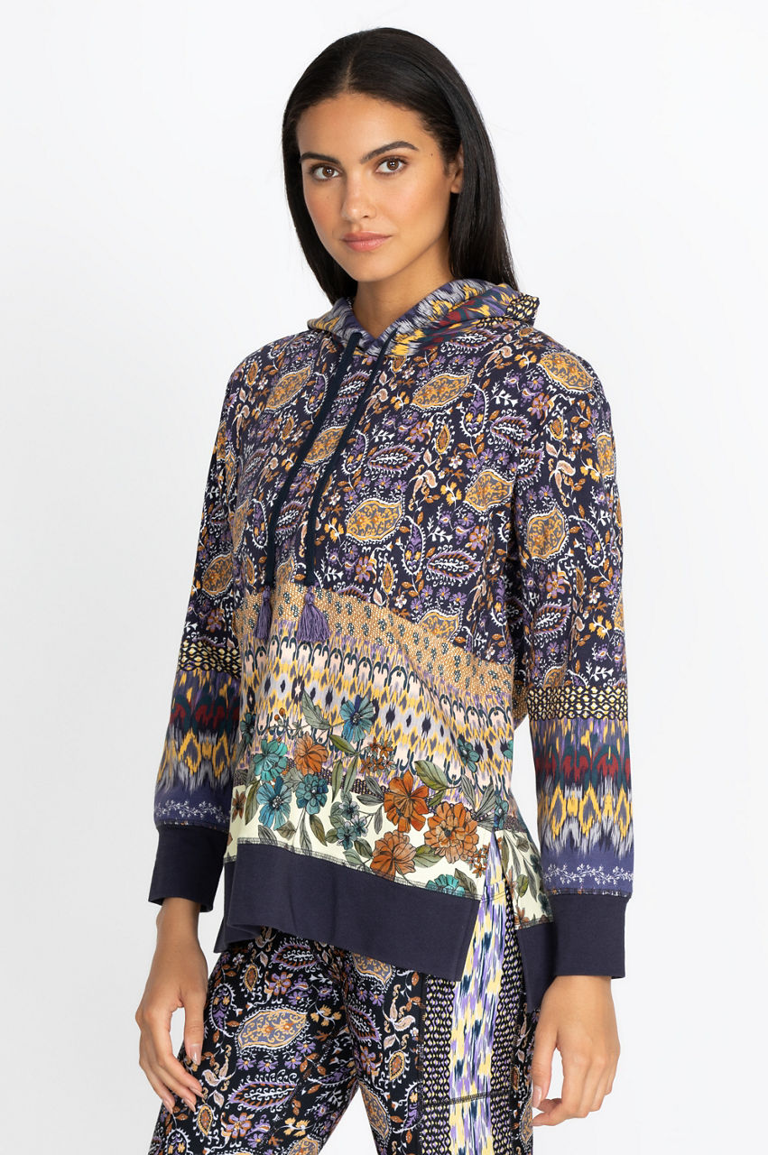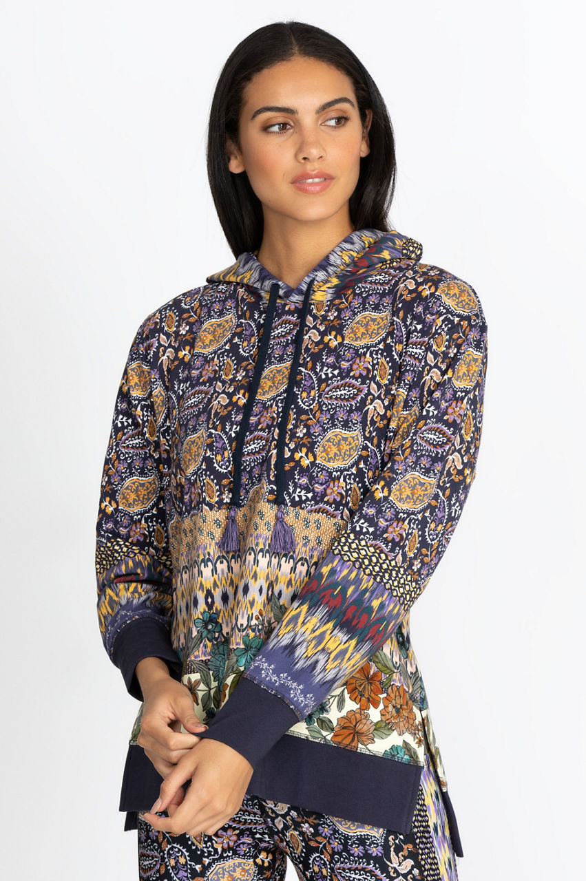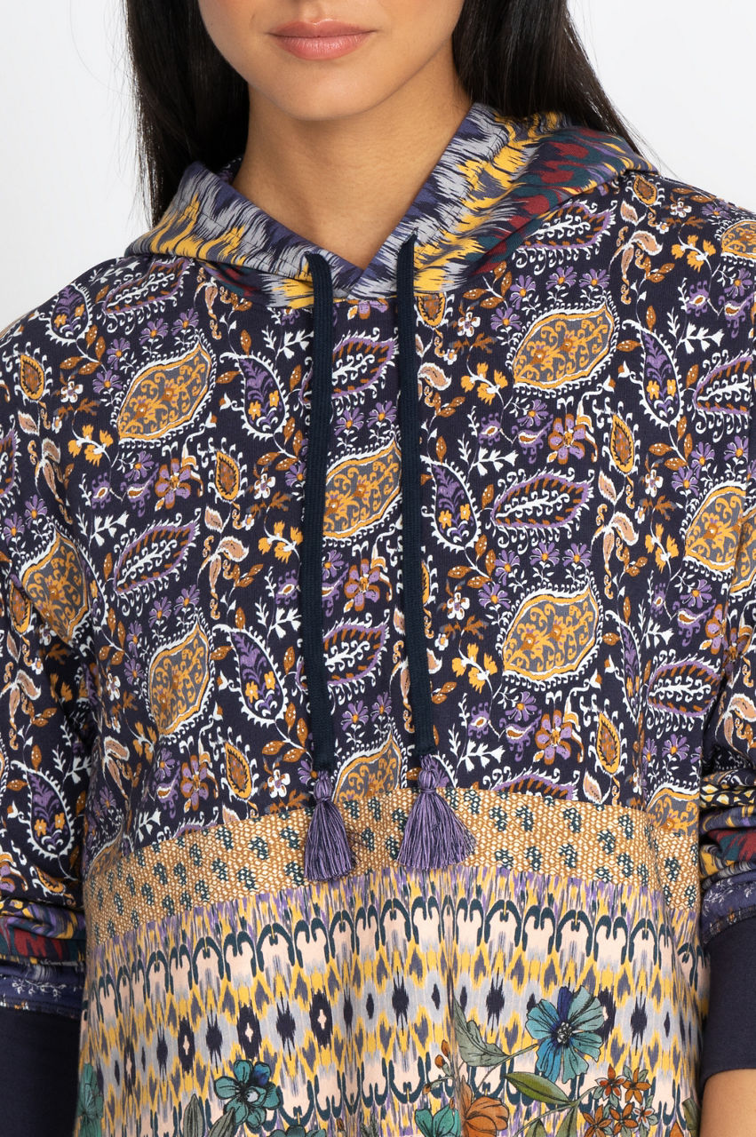 The Betzy High Low Pullover Hoodie is a stylish and elegant take on a wardrobe staple. This hoodie stands out thanks to its high-low construction, original print, and the tassel detail. You ll love lounging in this piece thanks to the soft cotton blend, but it s also a gorgeous top for creating sporty and modern outfits with your favorite leggings.