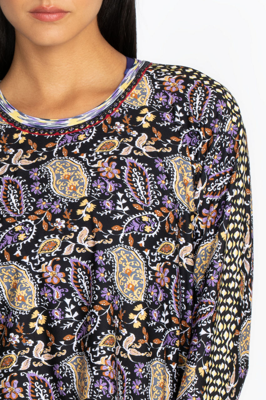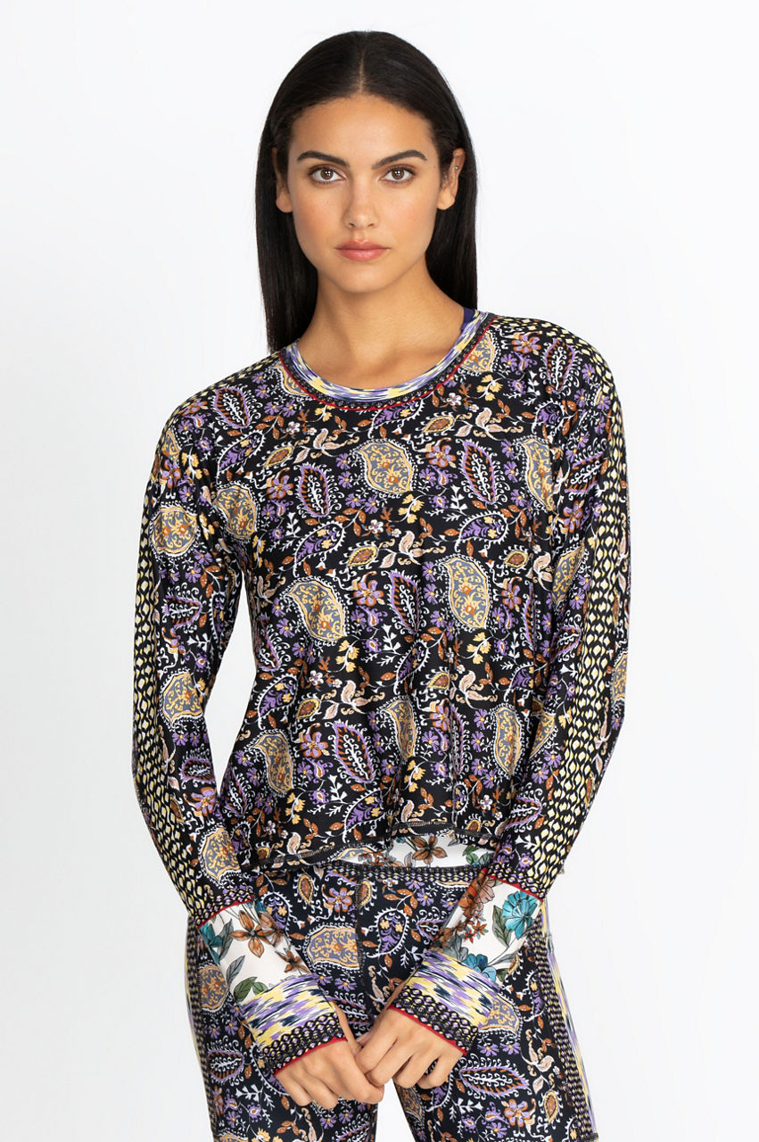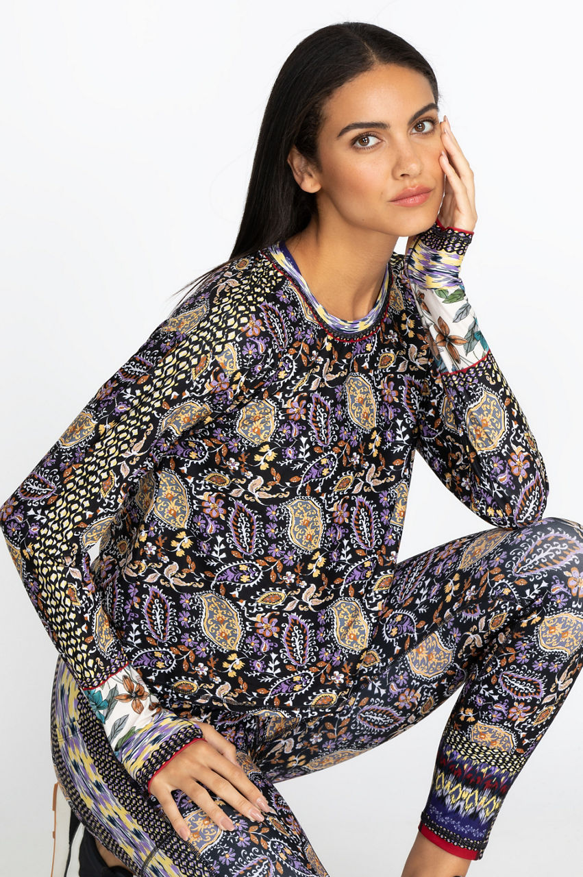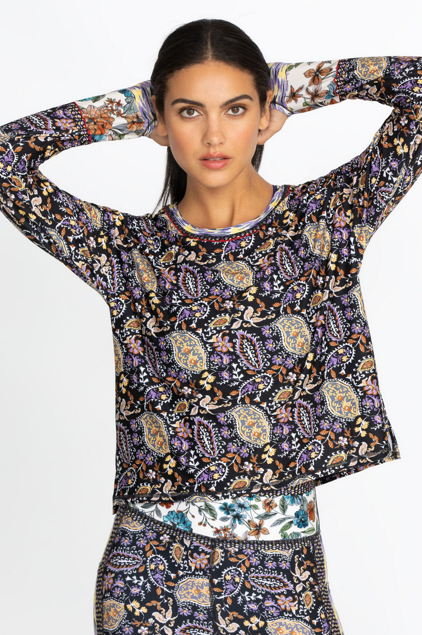 The unique Johnny Was print in our Step Hem Tee offers an exceptional piece of fashion that easy to wash and dry. The spandex and polyester fabrics guarantee durability and will last across several seasons. If you need to add a perfect long sleeve t-shirt to your collection, this one is the ideal option. You may machine wash it without worry with other similar colored garments.