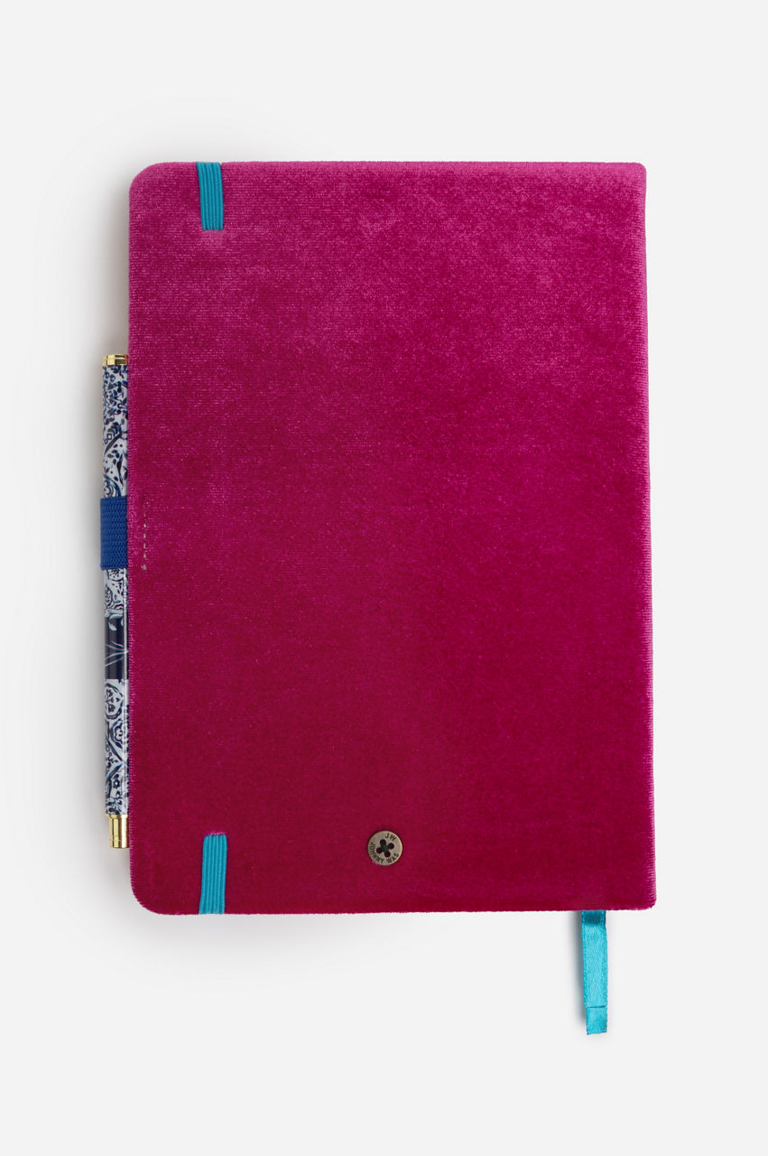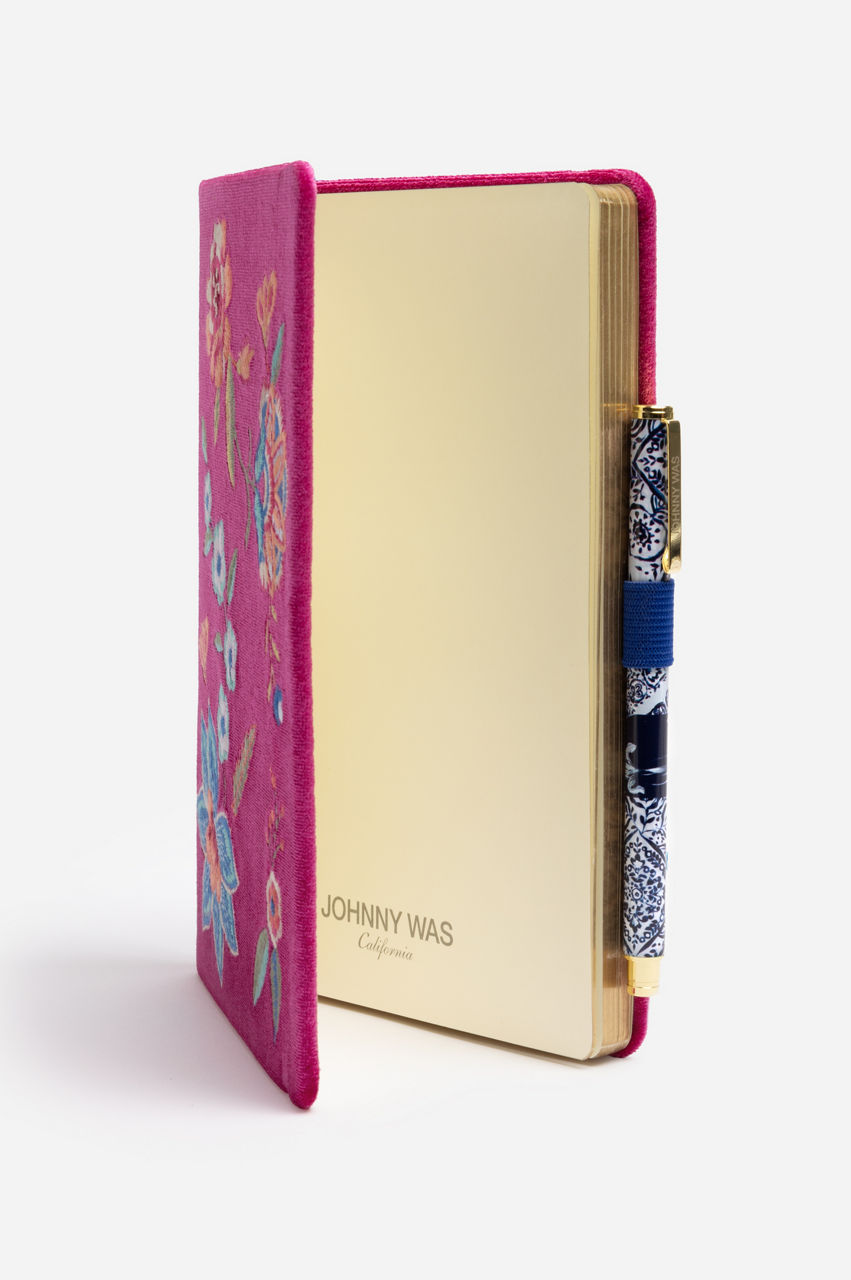 Perfect for both work and home, the Bianca Journal + Pen Set lends a chic touch to your note-taking routine. This set includes a lively embroidered cover entwined with exotic flowers and a pen complete with a blue floral print. Use this set for journaling or during work meetings.