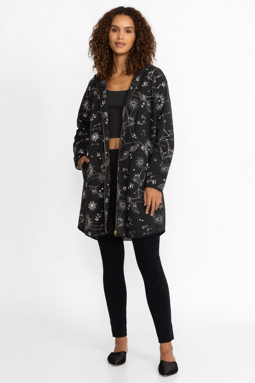 The Bijou Long Hoodie Coat is a perfect layering piece for the cooler season. Crafted from a cotton blend fabric with a touch of stretch for added comfort, this easy-care coat features an attached hood and zipper front. Layer over a cozy pullover and classic denim for a polished casual look.