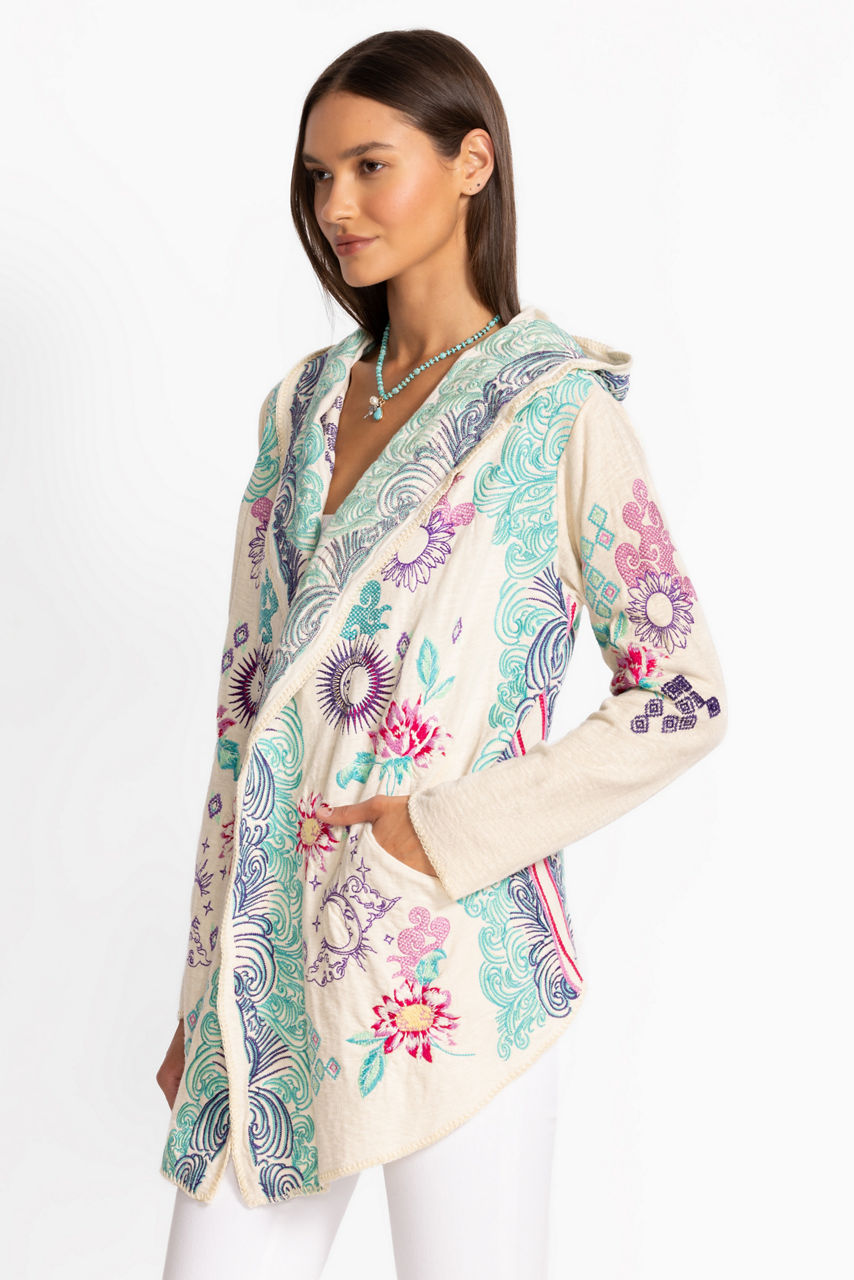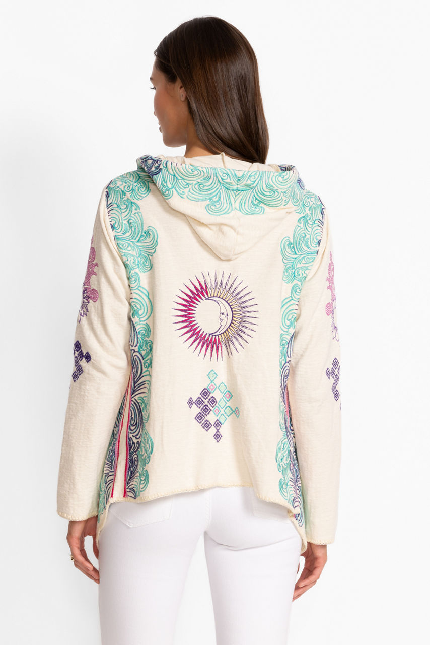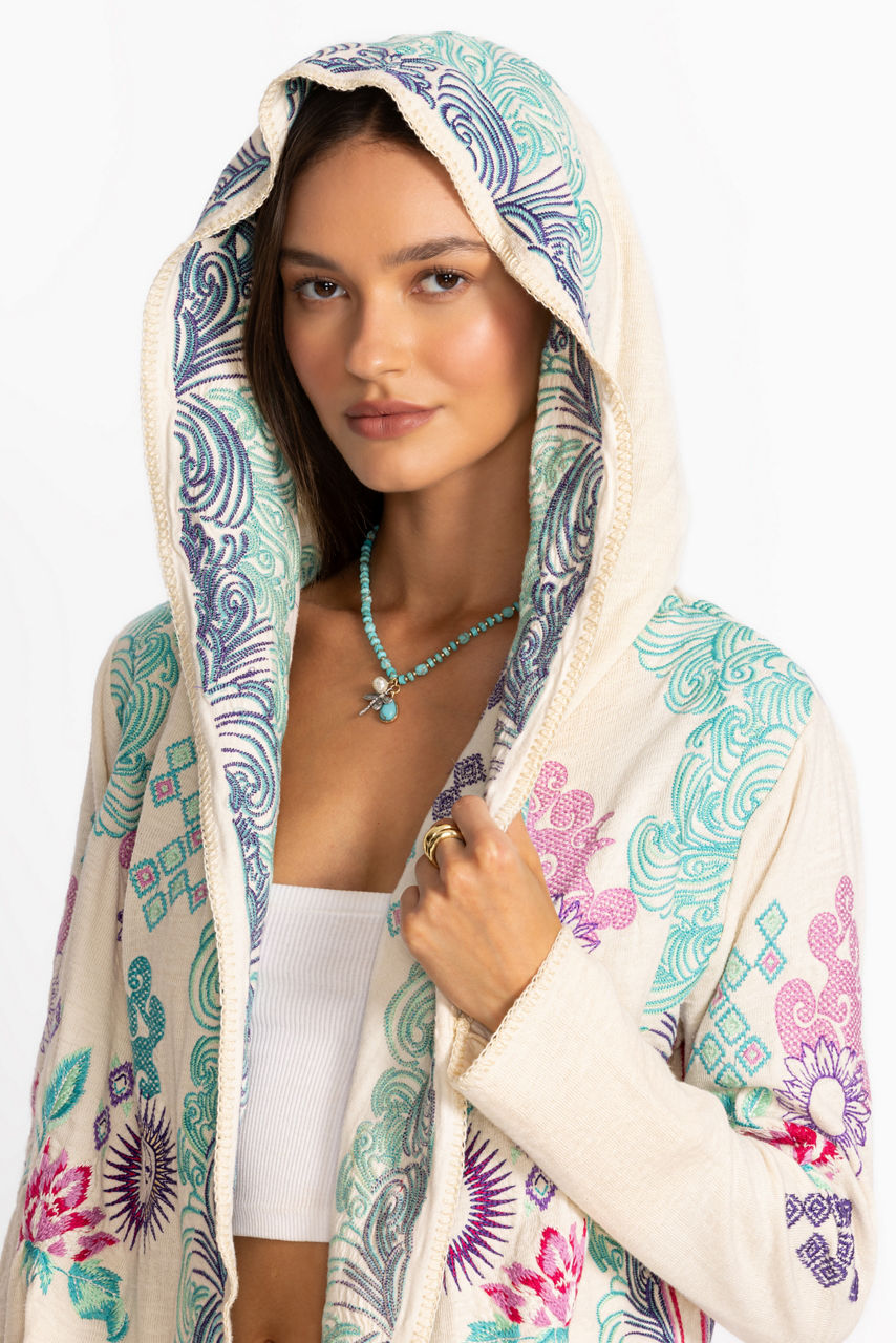 Crafted from 100% rich cotton, the Biya Short Hoodie is embellished with intricate floral embroidered detailing. Featuring an open front with an attached hood, this hoodie is finished with an angled hemline and convenient slip pockets at the sides. Layer over a coordinating tee and pair with relaxed-fit denim for a casual weekend ensemble.