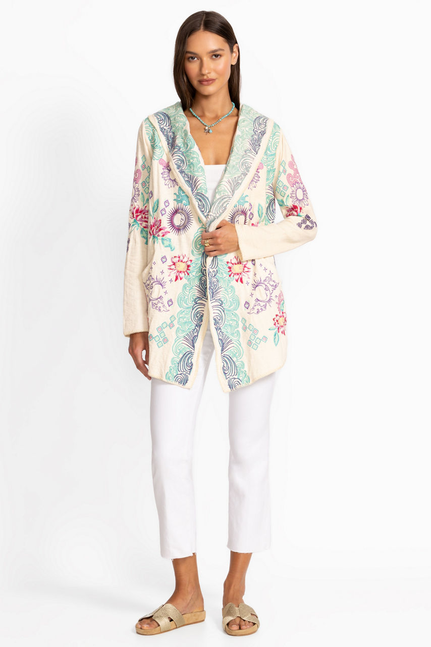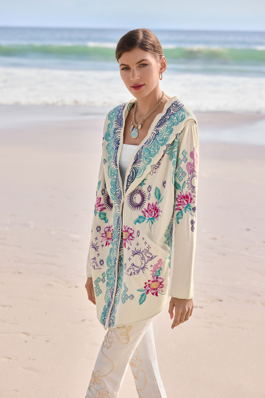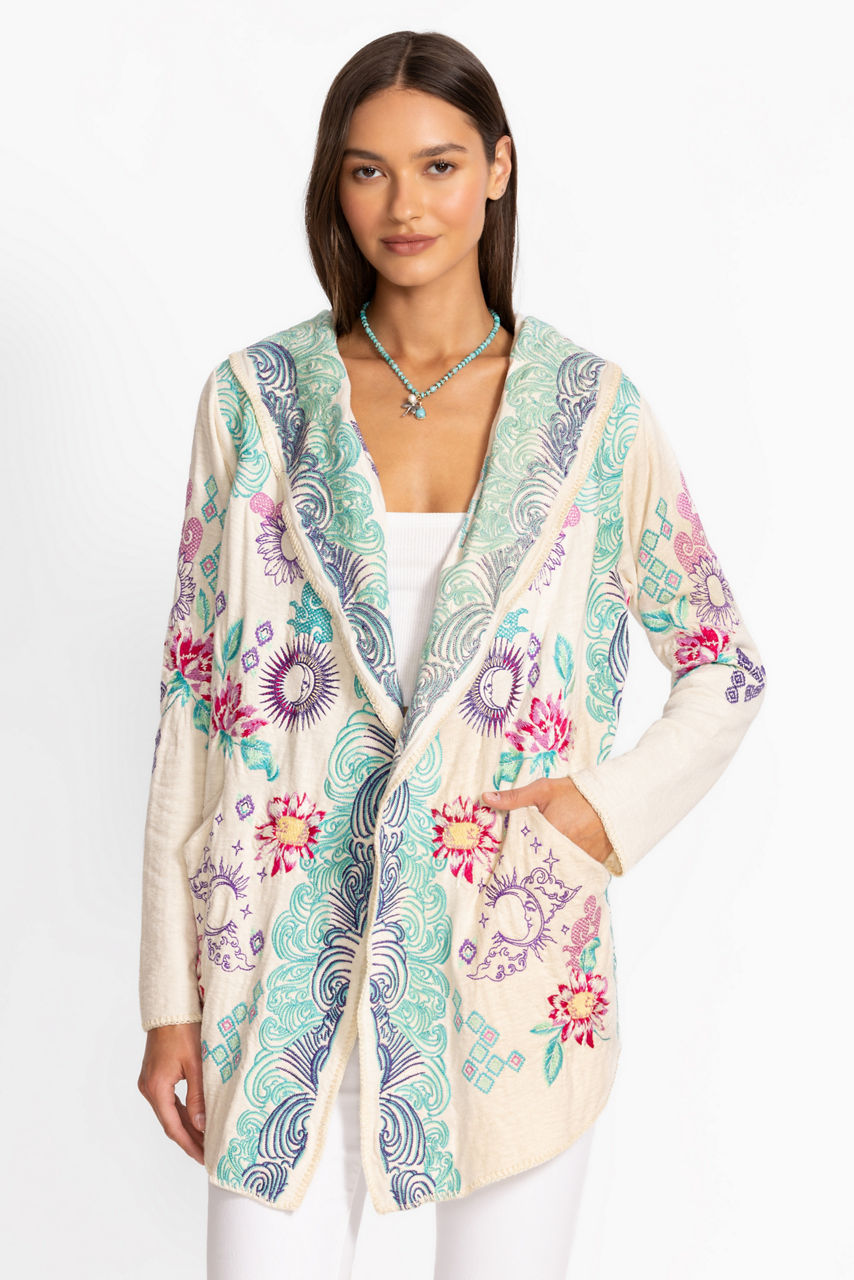 Crafted from 100% rich cotton, the Biya Short Hoodie is embellished with intricate floral embroidered detailing. Featuring an open front with an attached hood, this hoodie is finished with an angled hemline and convenient slip pockets at the sides. Layer over a coordinating tee and pair with relaxed-fit denim for a casual weekend ensemble.