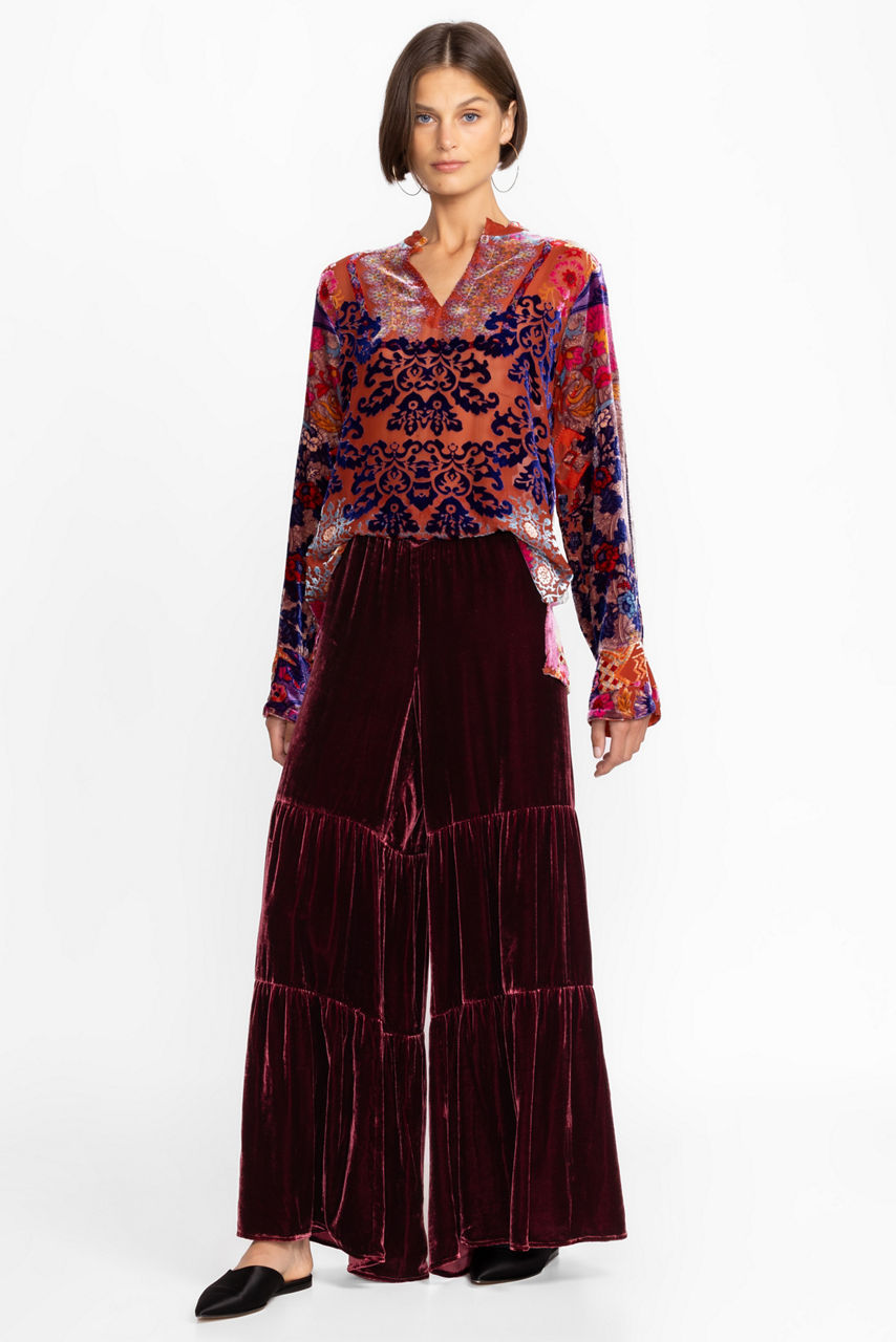 Black Velvet Tiered Wide Leg Pant