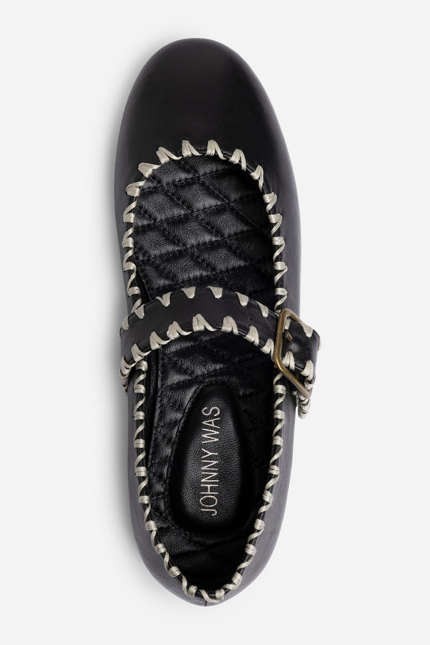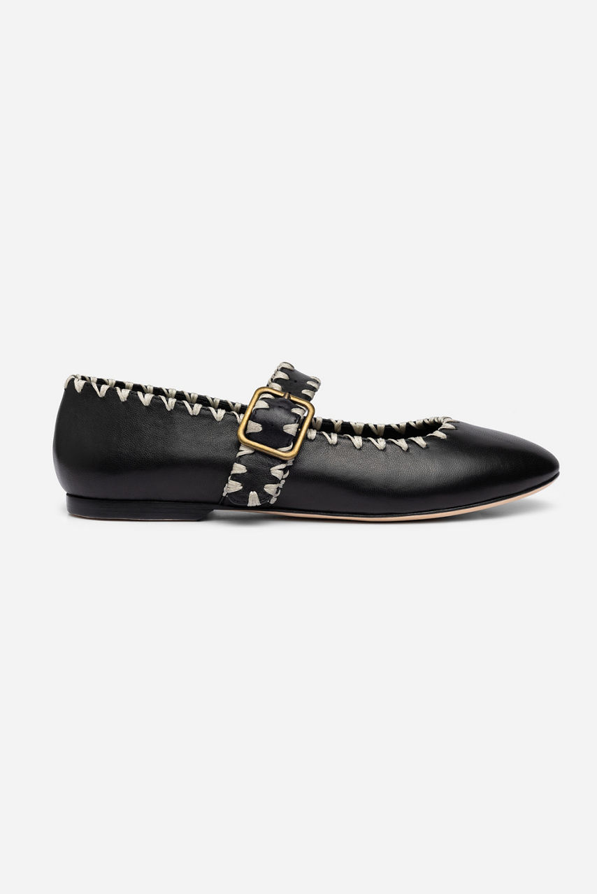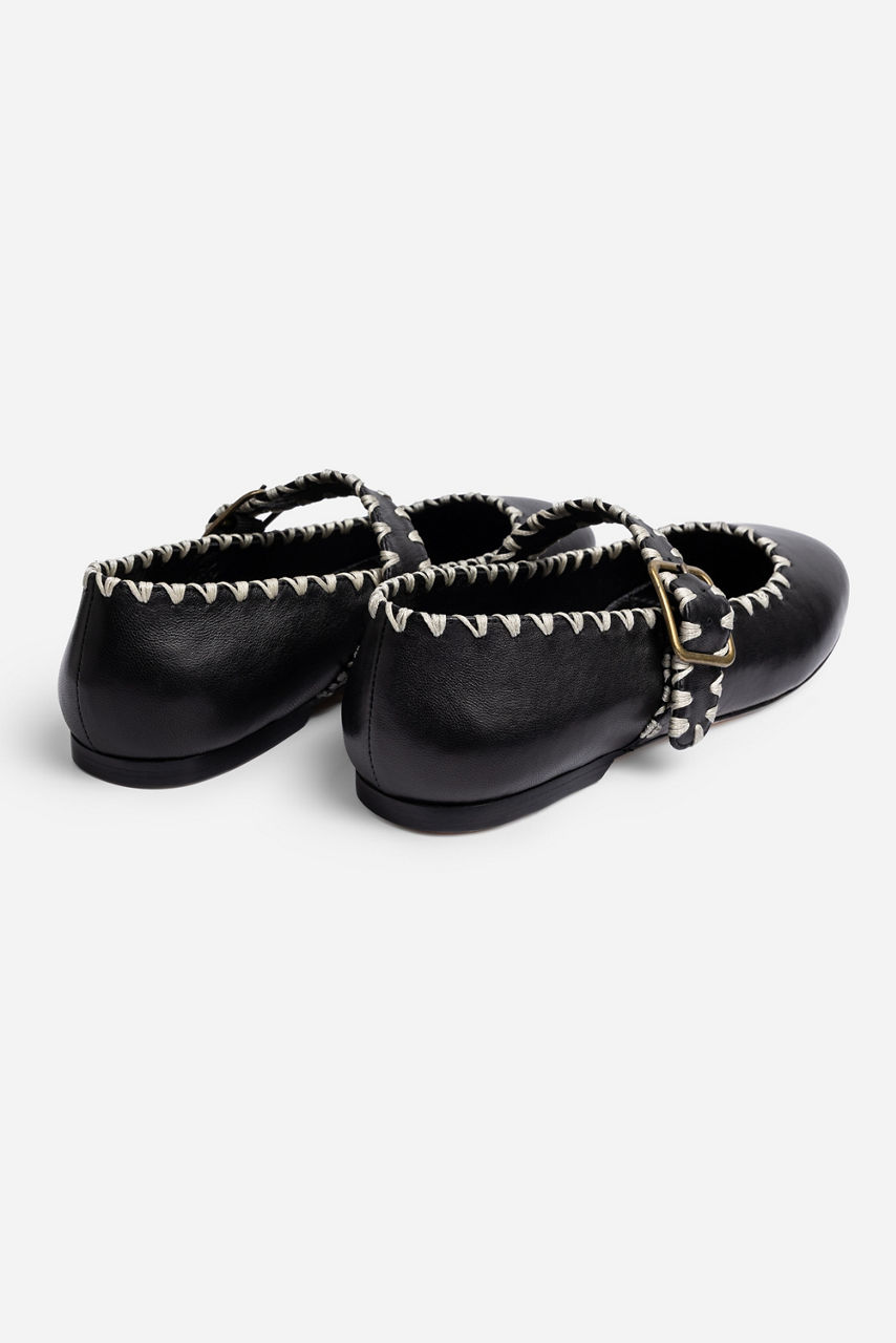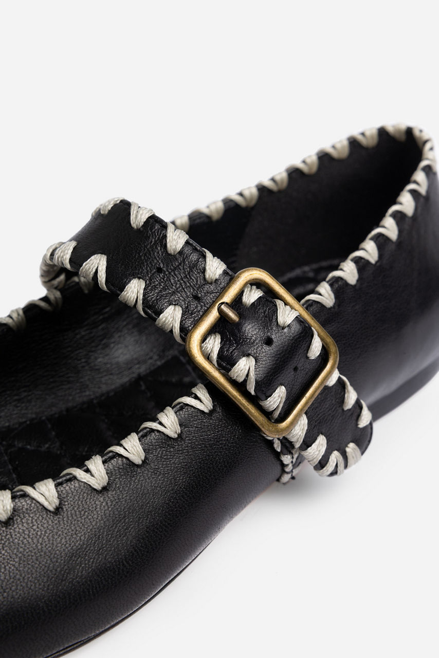 BLANKET STITCH LEATHER MARY JANE FLAT