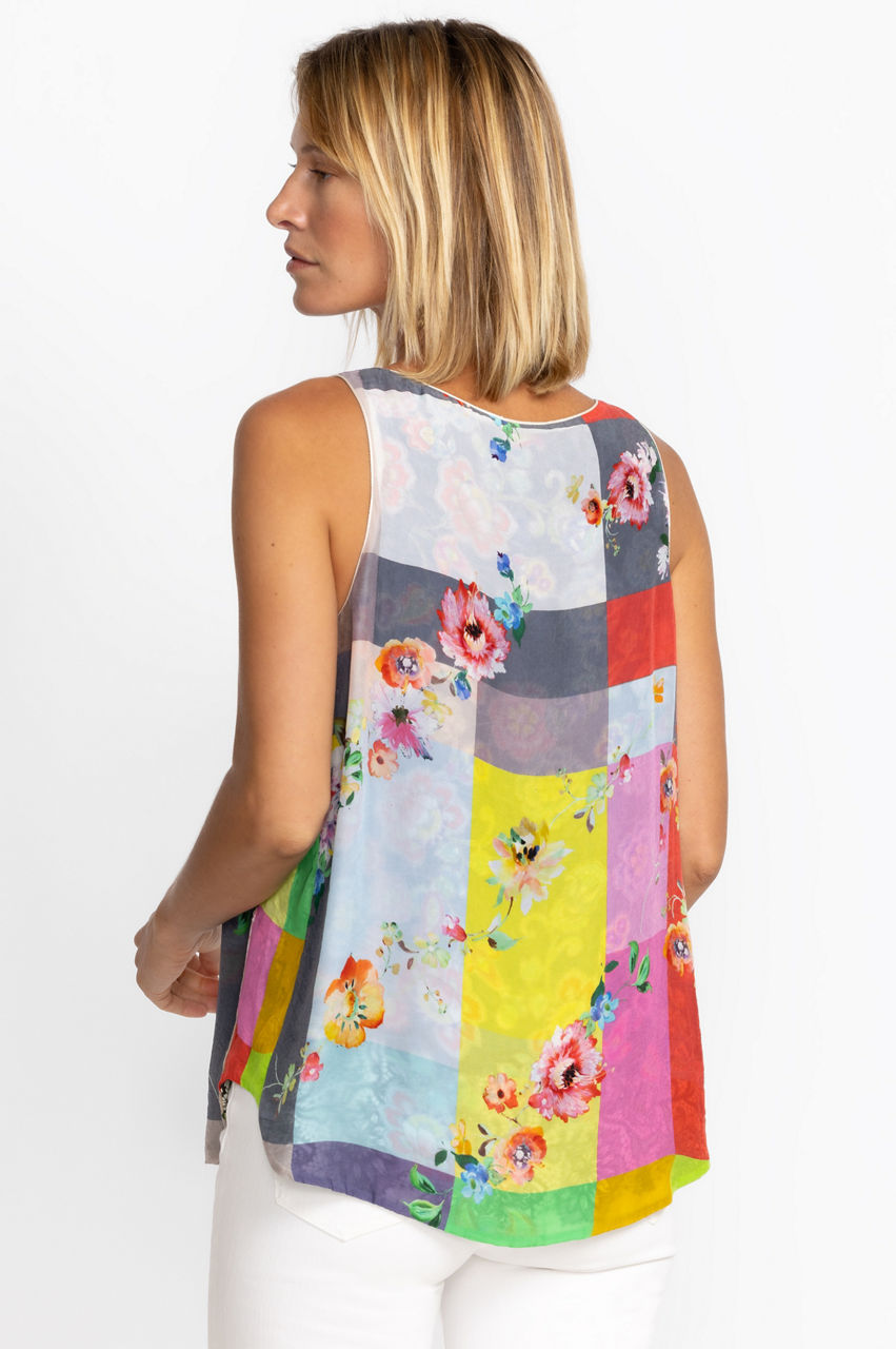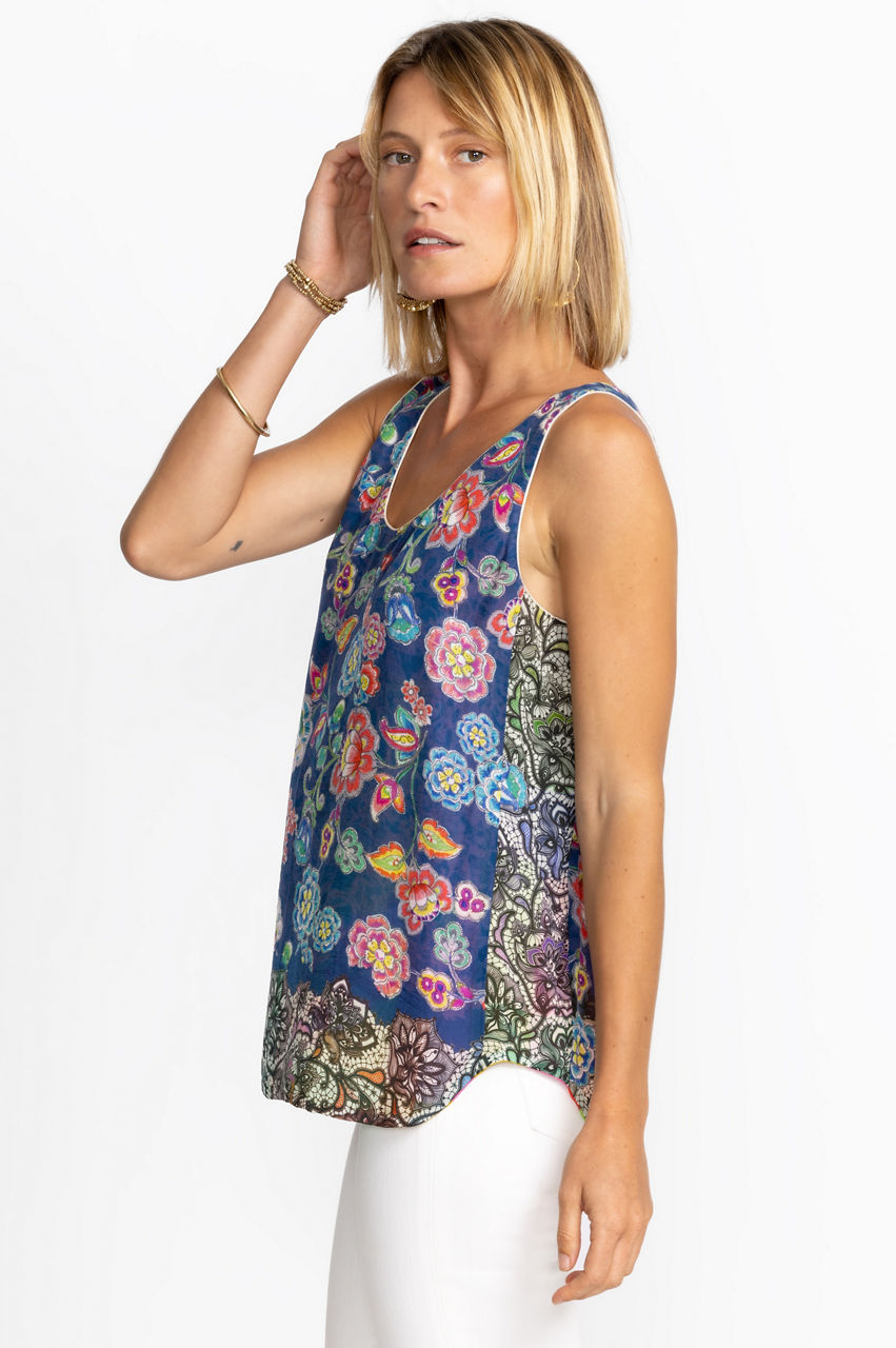 Featuring delicate floral medleys against a bold backdrop, the Block Ayanna Tank Top is the best of two worlds. Fully reversible for two unique looks, this staple piece offers multiple pairing possibilities and eases the difficulty of packing for a trip. Wear with joggers and sandals for a fun casual styling.