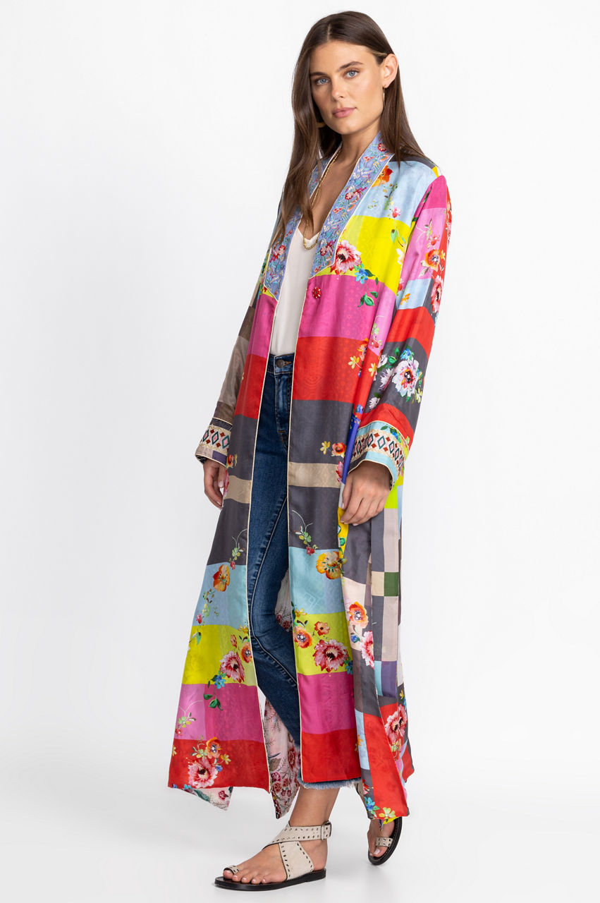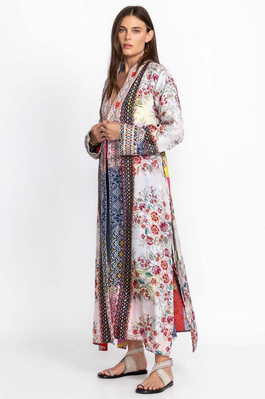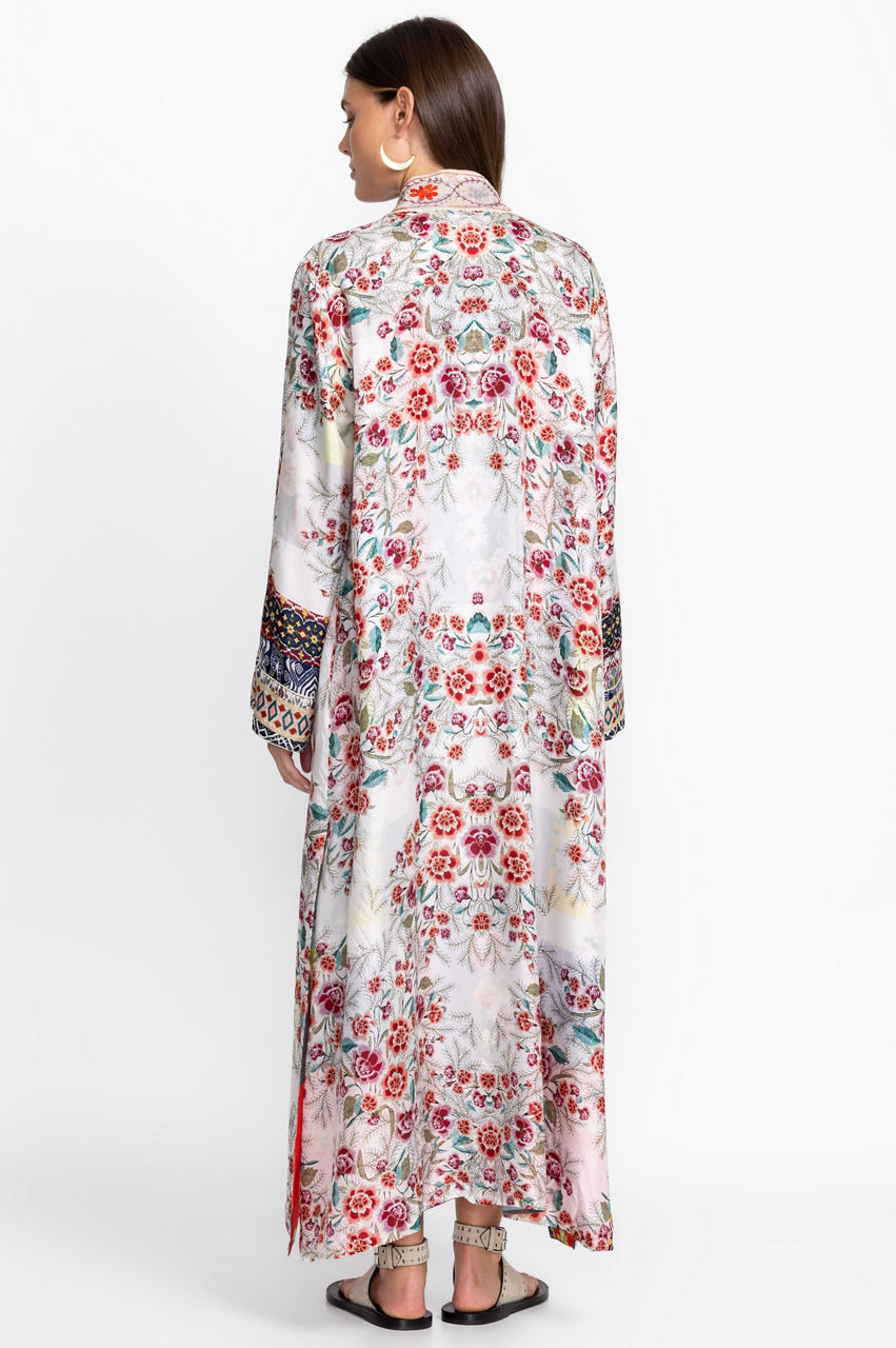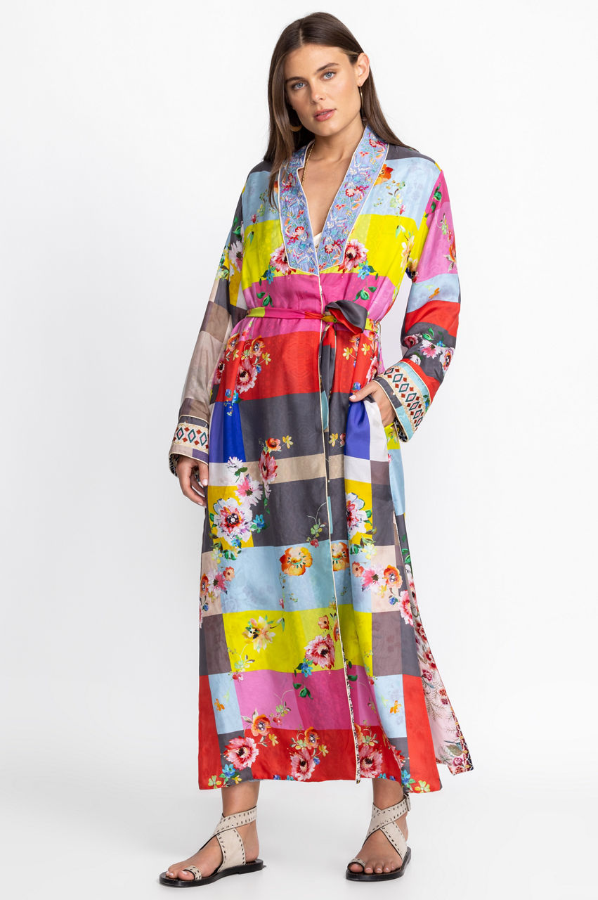 Elevate your after dark ensembles with the Block Tove Kimono. Effortlessly elegant, this kimono is designed from lustrous silk and features long sleeves, pockets, and side slits at the hem for relaxed movement. Finished with a printed reversible side, this kimono can be layered over a slip dress for a glamorous evening ensemble.