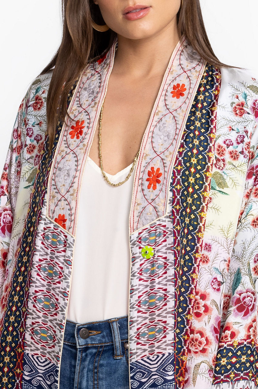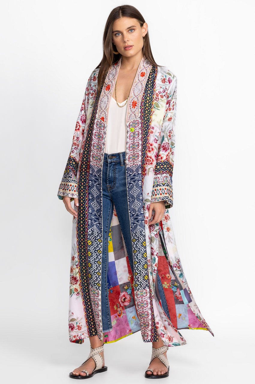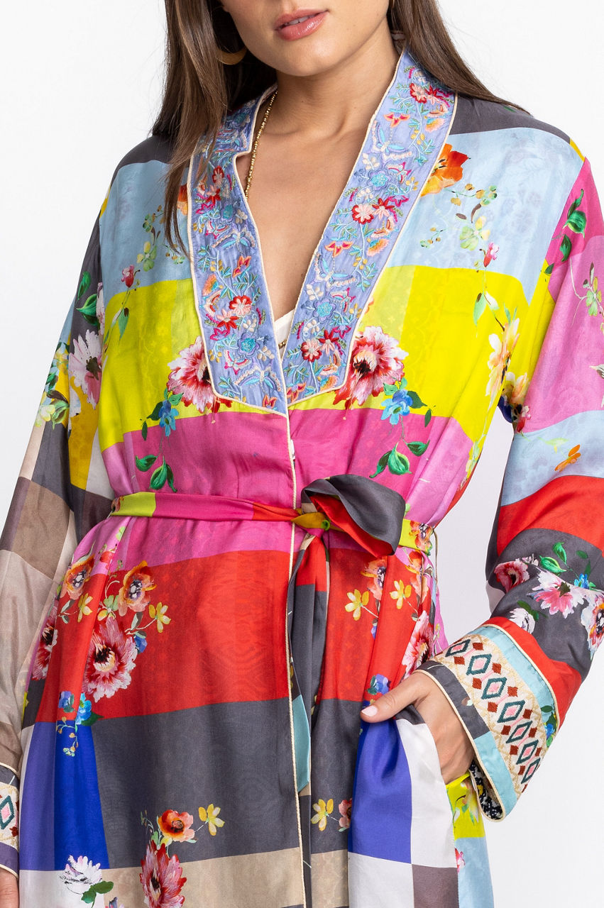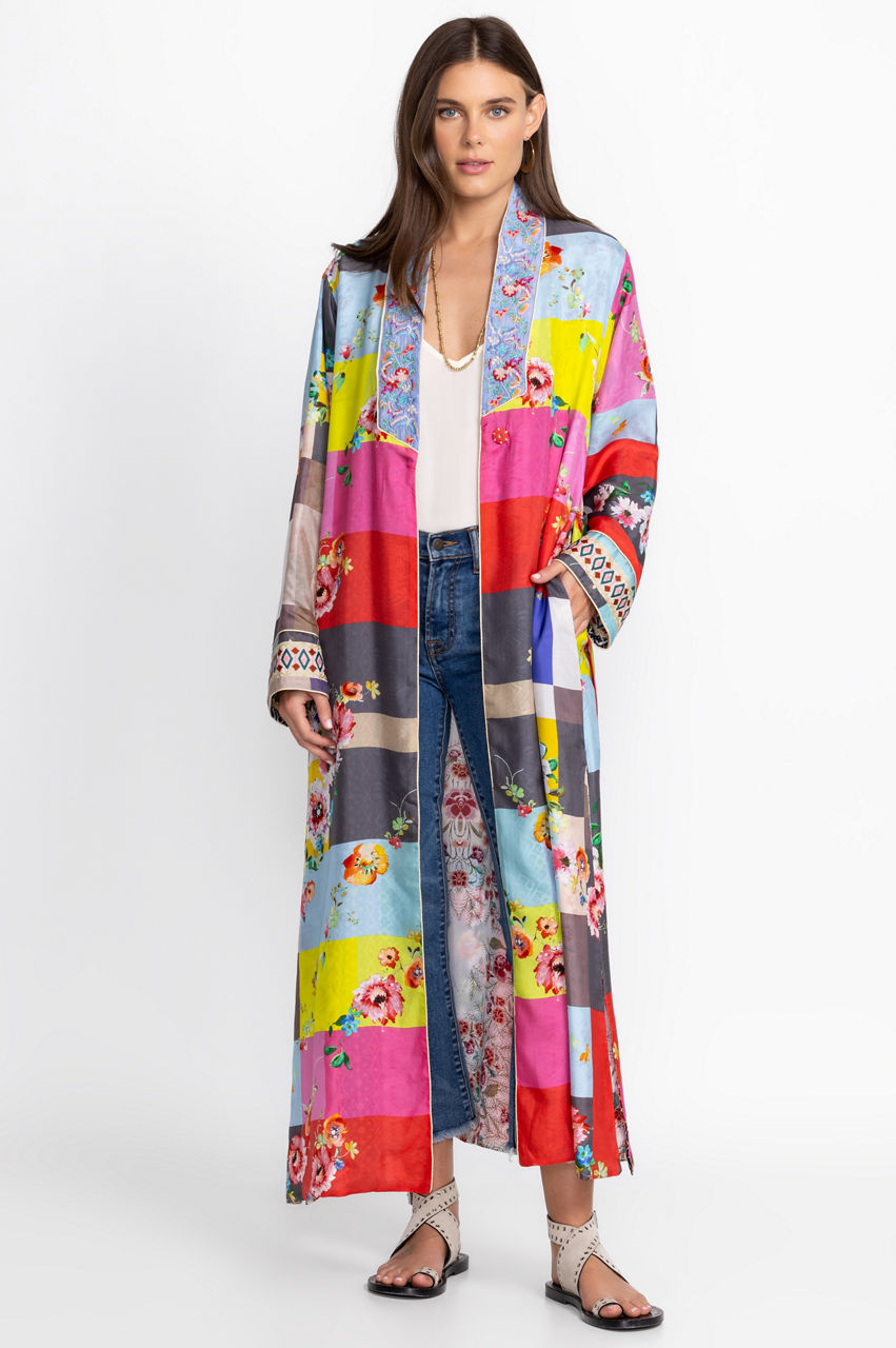 Elevate your after dark ensembles with the Block Tove Kimono. Effortlessly elegant, this kimono is designed from lustrous silk and features long sleeves, pockets, and side slits at the hem for relaxed movement. Finished with a printed reversible side, this kimono can be layered over a slip dress for a glamorous evening ensemble.