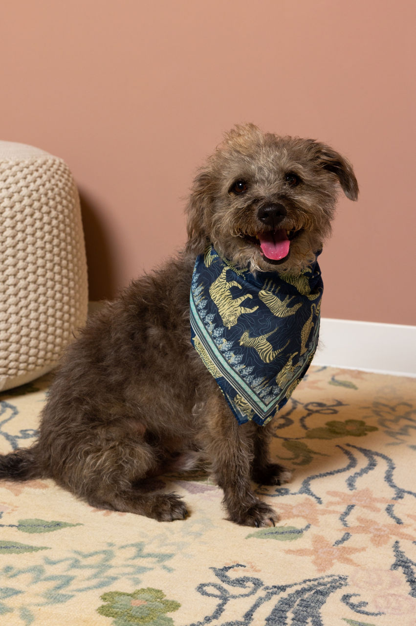 Your dog will be stylish in our Blue Tiger Pet Bandana. This bandana is the perfect accessory to add some style to your pup, perfect for taking walks or going to the park!