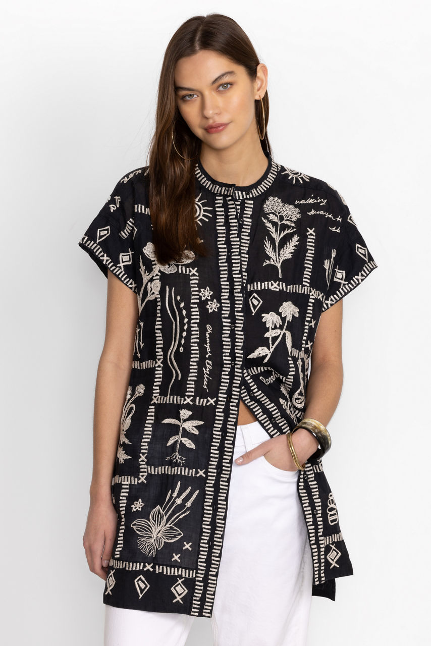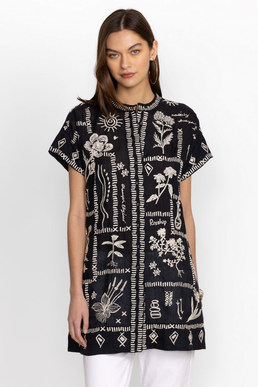 Offering a stunning combination of comfort and style, the Botanique Dolman Swing Tunic is a perfect pick for warmer days. Crafted from a breathable, lightweight material, this button-front tunic features dolman sleeves and a relaxed fit swing skirt for all-day comfort. Pair with large sunglasses and stylish fashion sneakers for a day of sightseeing.