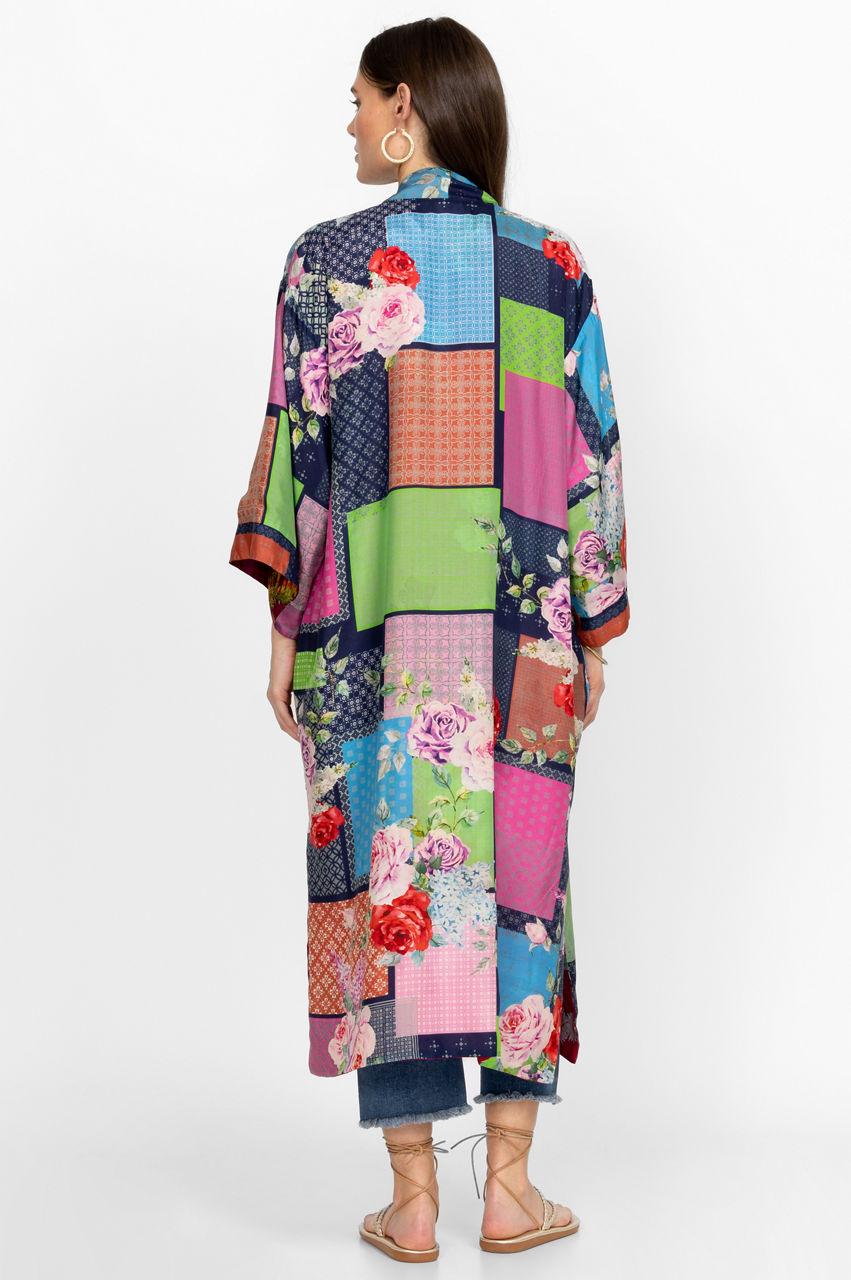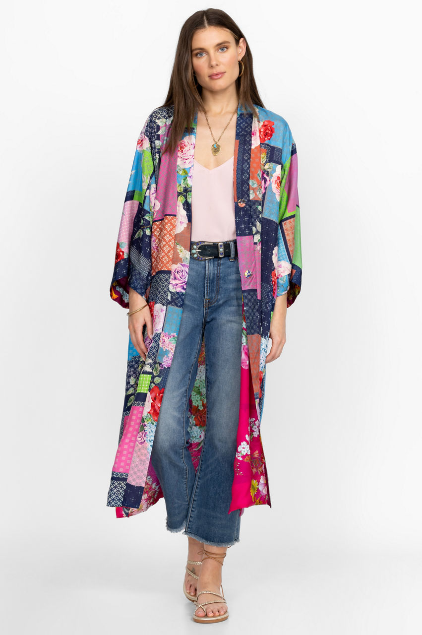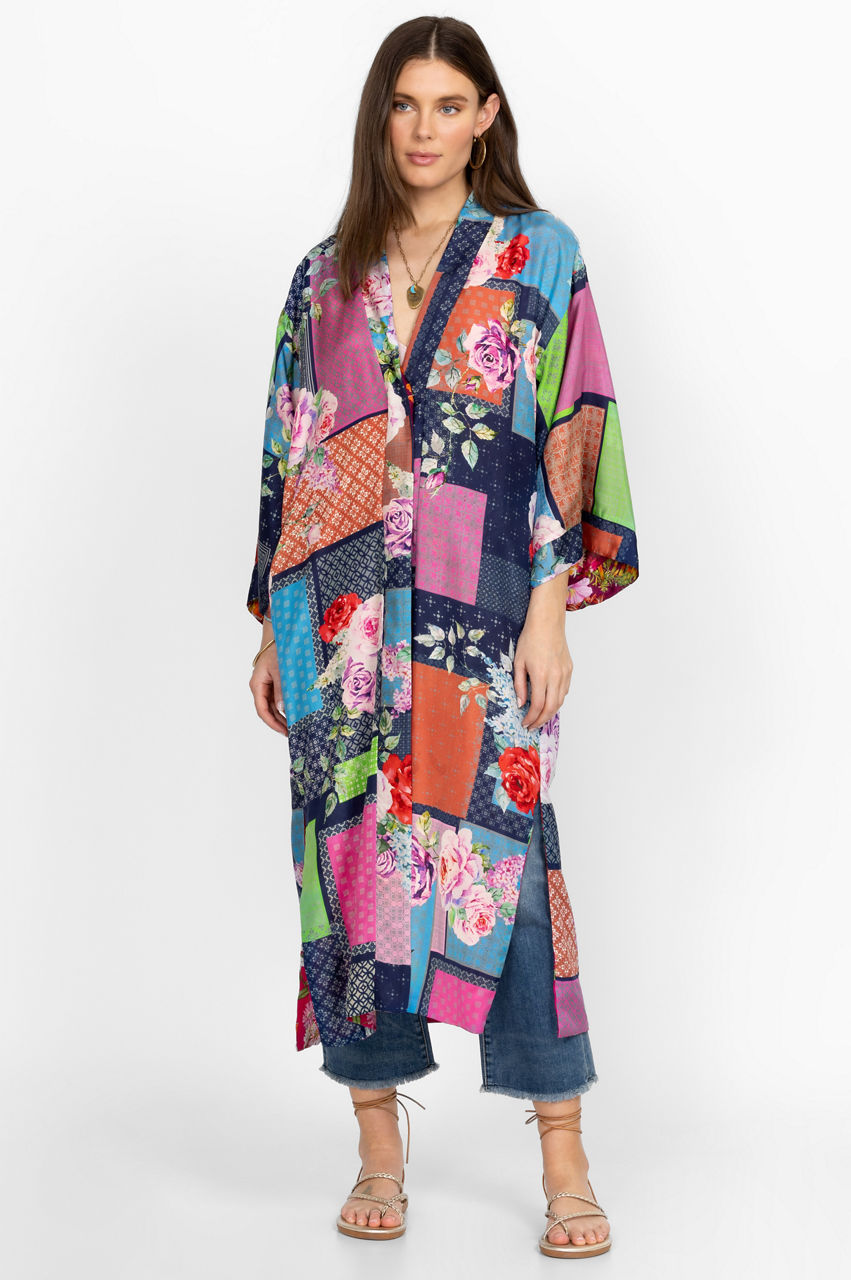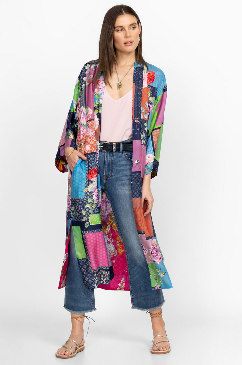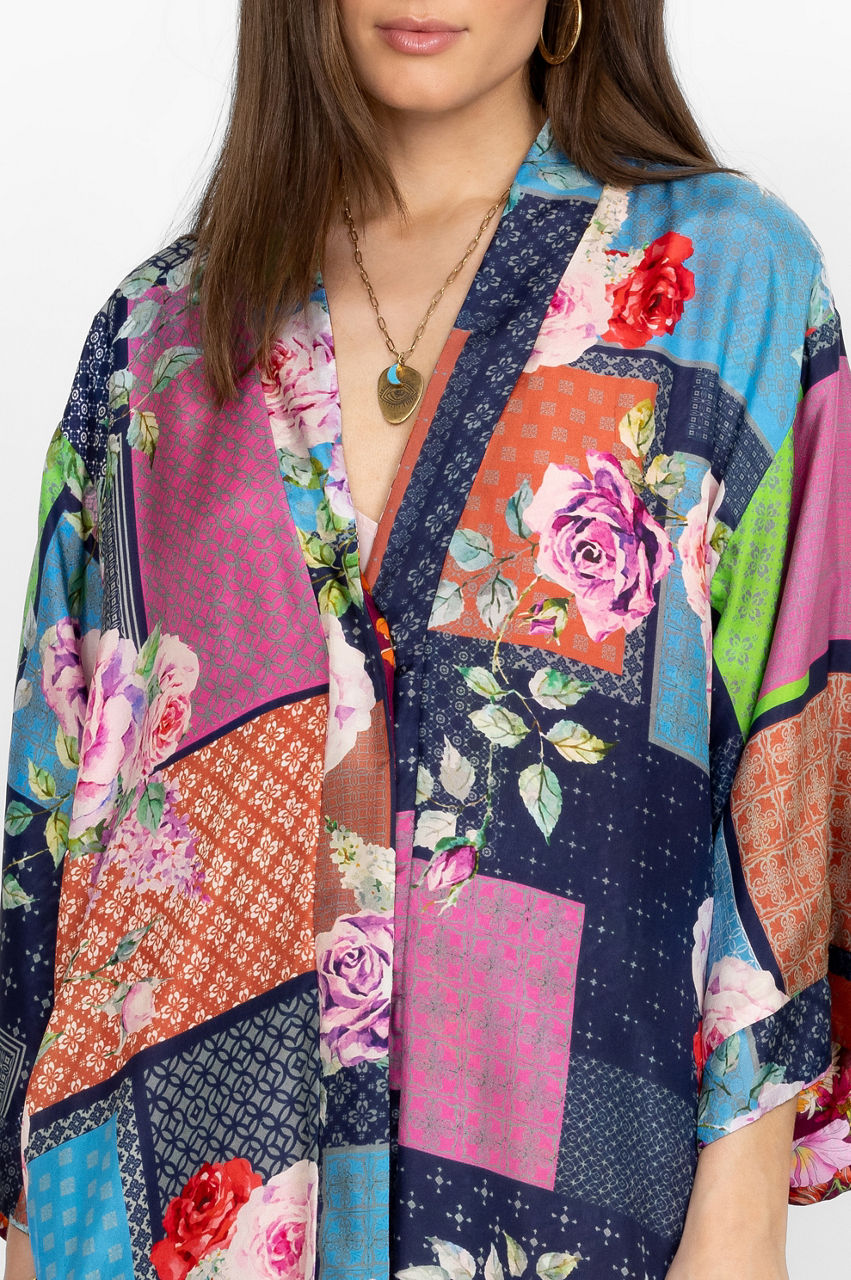 Spun from lustrous silk, the Bouquet Jules Kimono seamlessly balances timeless appeal with striking elegance. Falling to a maxi length, this eye-catching kimono features a floral printed reversible side, a front snap button closure, long sleeves, and a bountiful display of beautiful flowers in rich shades. Layer over a dress and pair with heels for an opulent take on evening dressing.