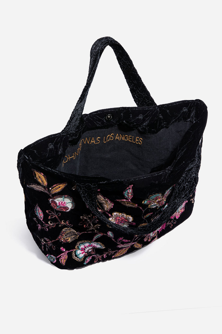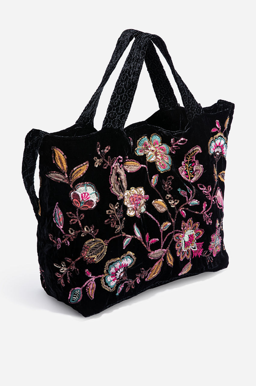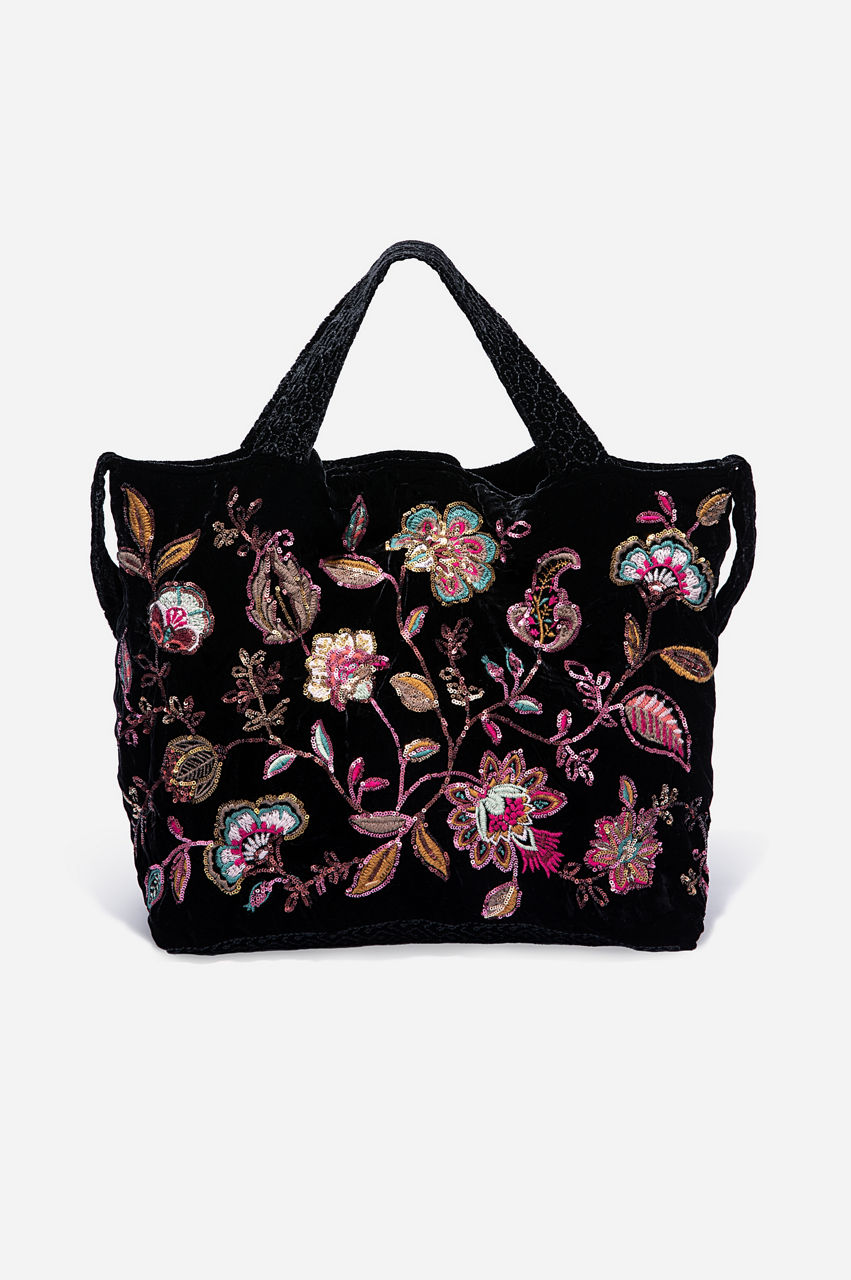 The gorgeous floral pattern, beautiful embroidery, and luxe velvet material of the Brenda Velvet Tote Bag help turn any outfit into a stylish ensemble. Pair it with a casual outfit, like jeans and a blouse, for running errands. Dress it up with a fun skirt and blouse combination. This tote bag is perfect for holding all essentials in its spacious interior.