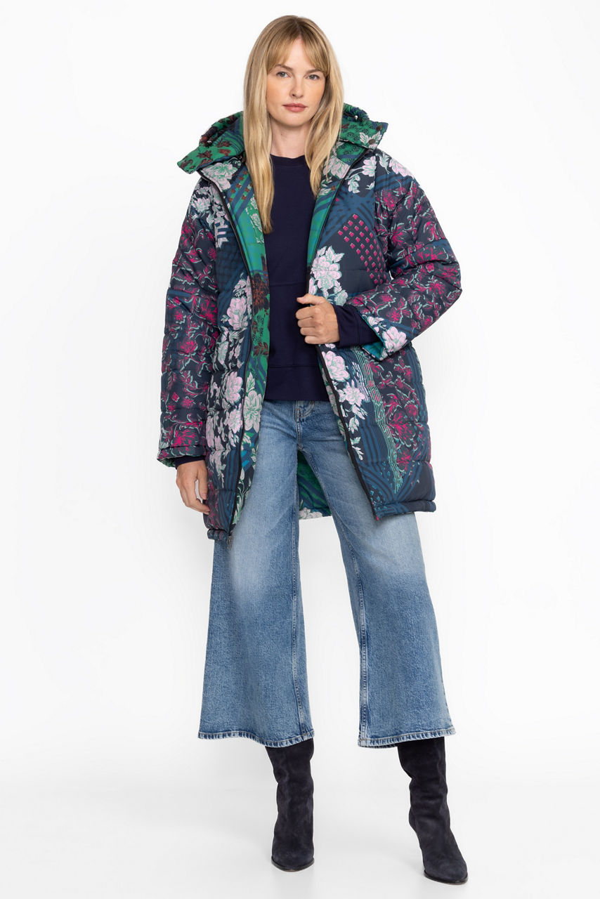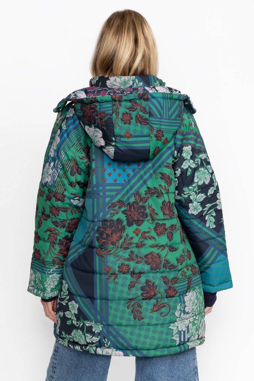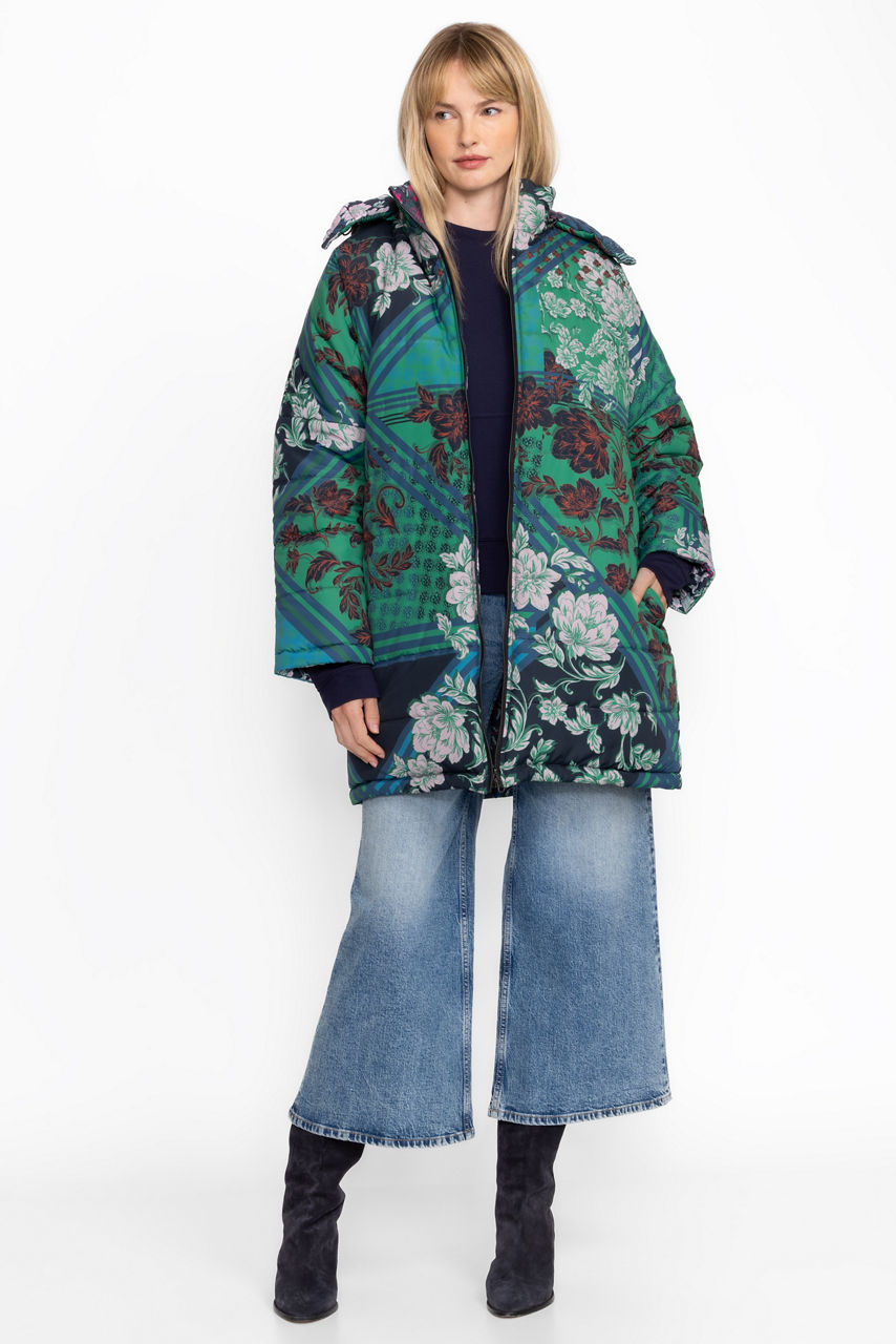 Crafted from a durable, insulated fabric, the Britt Puffer Jacket is fully reversible offering two unique designs for a little variety in your outerwear wardrobe. Featuring a detachable hood and seam pockets at both sides, this deep green jewel-toned jacket adds a splash of color to your look. Layer over a cozy pullover and skinny jeans for a cozy cold-weather combination.
