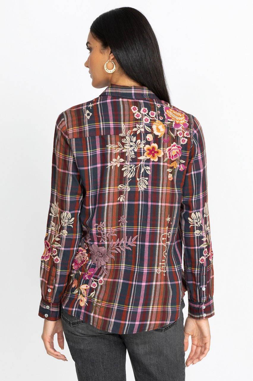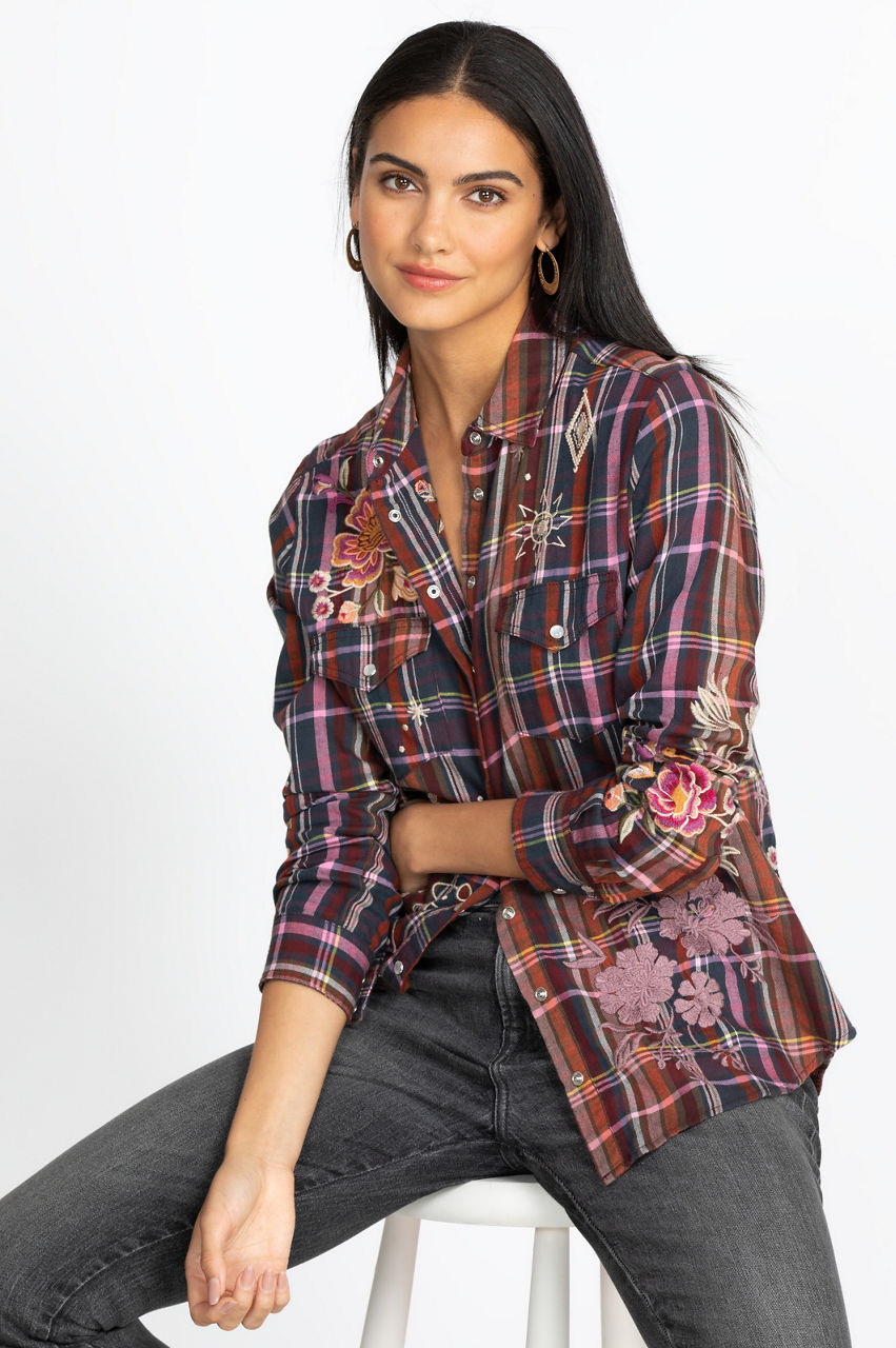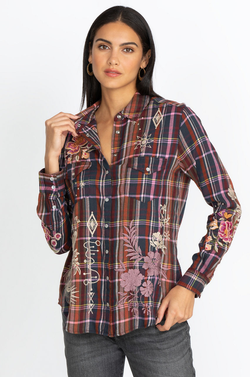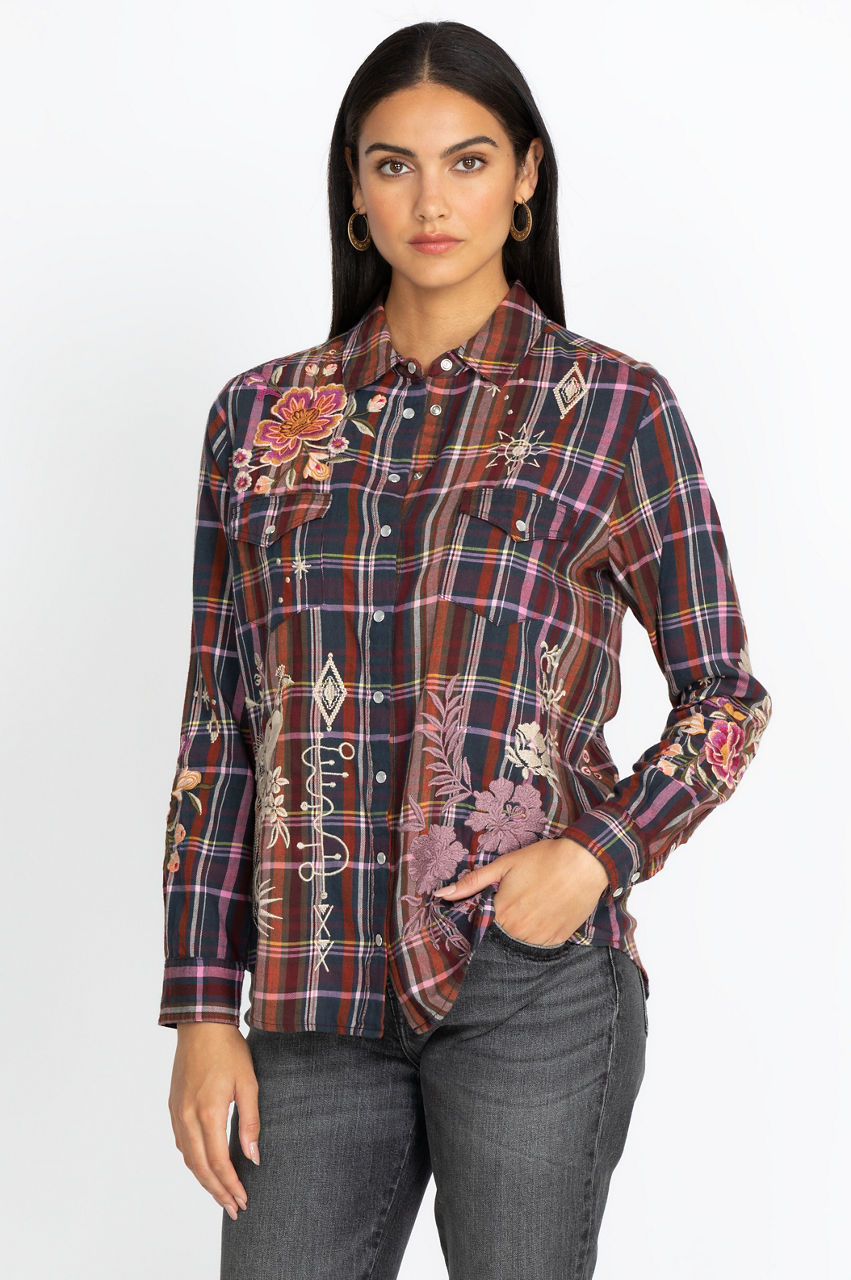 Our Brittany Patch Pocket Shirt brings effortless Bohemian style no matter the occasion. This top features remarkable embroidery and an ultra-comfortable design to keep you wanting more. Pair this piece with your favorite jeans and ankle boots, and pull the ensemble together with a simple layered necklace and stunning silver rings.