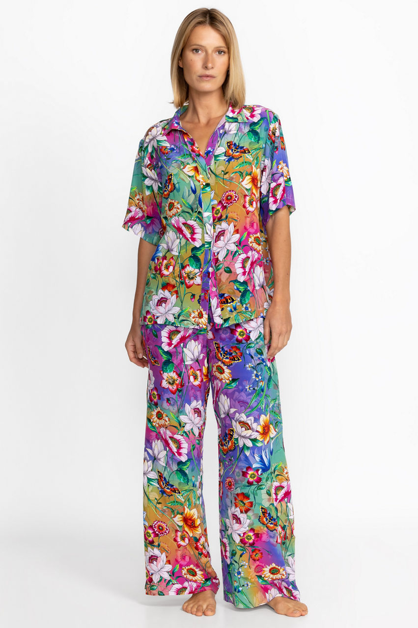 Reimagining classic pajamas, the Brooklyn Long Set is the perfect way to modernize your sleepwear. Featuring a button front top and elastic waist pant, this luxurious duo is thoughtfully constructed from the softest silk. Layer with the Cozy Robe for an evening on the patio enjoying your favorite book.