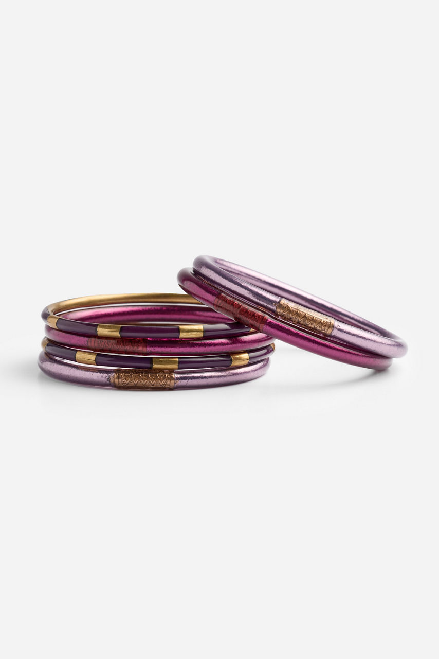 Radiating effortless charm and intention, the BuDhaGirl® Bracelet Bloom Stack captures the spirit of mindful luxury. This set of six All Weather Bangles is infused with genuine gold leaf and adorned with a delicate serenity prayer bead embodying beauty, resilience, and purpose. Style them with flowing silks, crisp linens, or your favorite denim for a luminous touch that transitions seamlessly from sunrise to sunset.