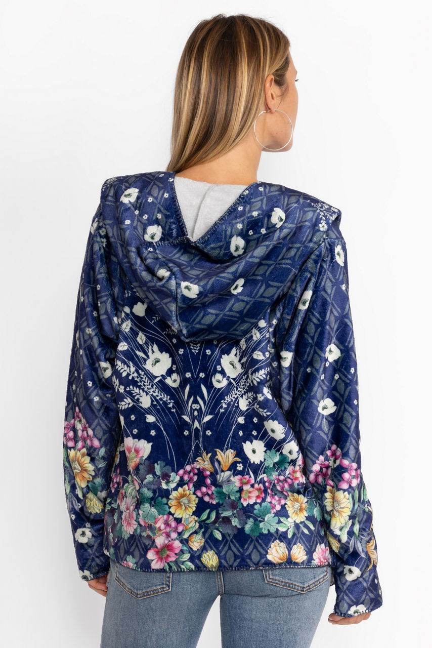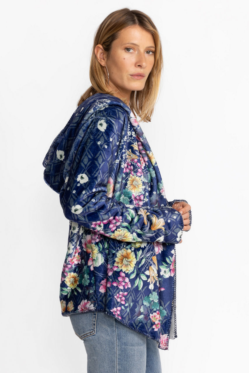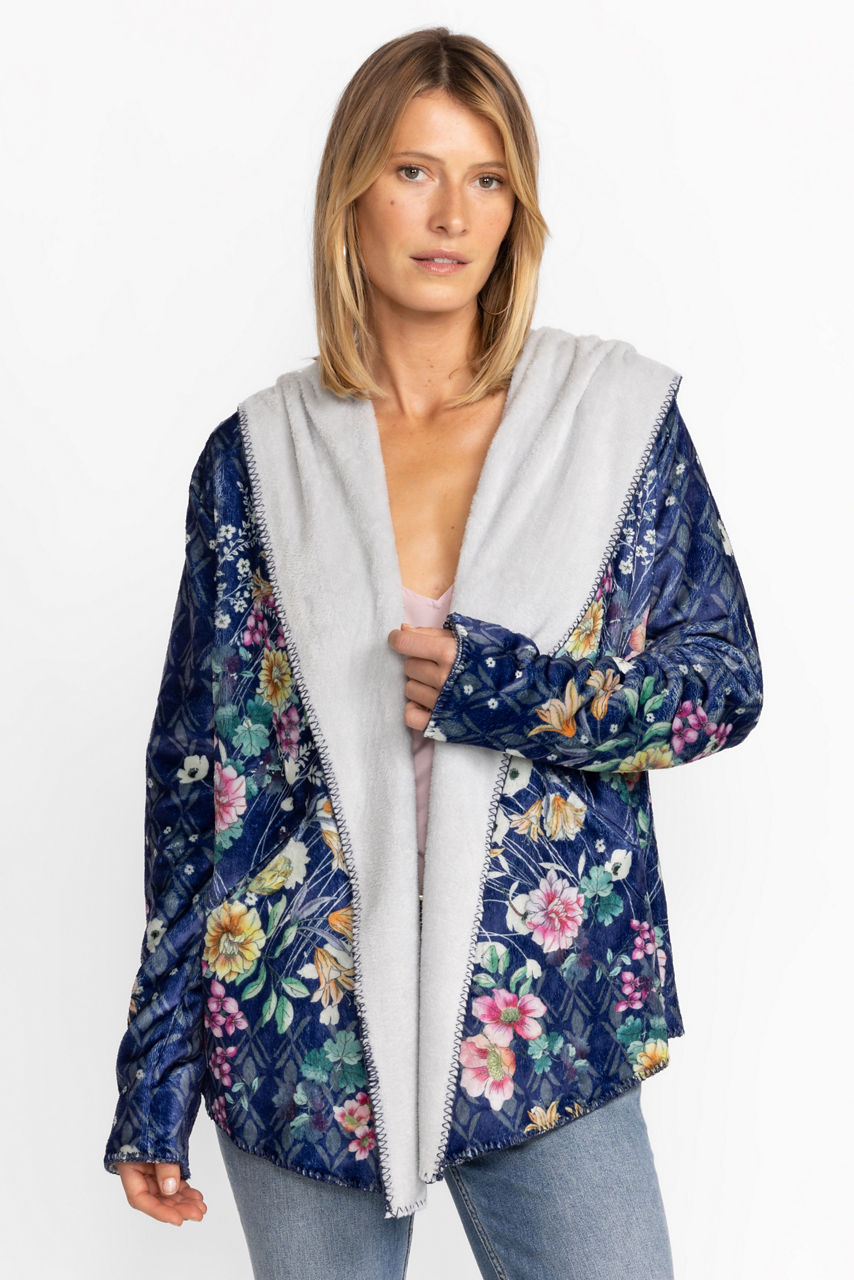 Crafted from a soft, insulating material, the Bursting Echo Sherpa Jacket lends a fashion-forward touch to practical layering. Elevated by a blossoming floral pattern in bright tones, this jacket features a hood, long sleeves, and blanket stitch detailing. Wear this jacket solo with a tee or layer under a coat on cooler days.