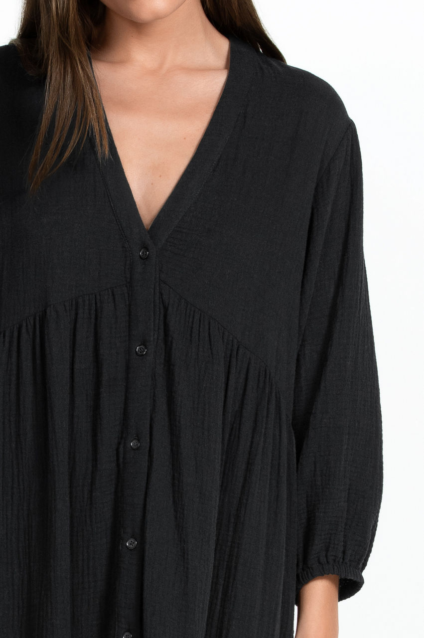 Button Tier V-Neck Dress