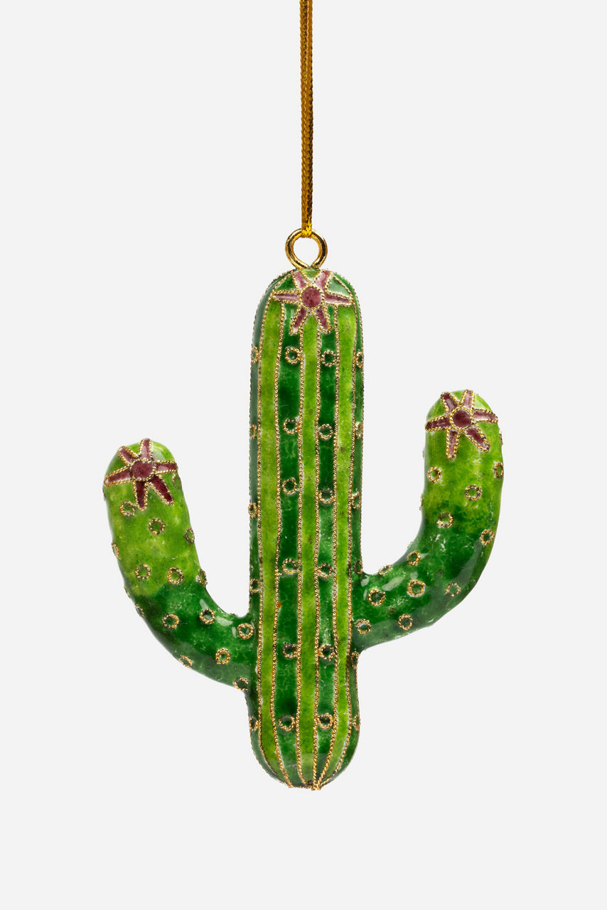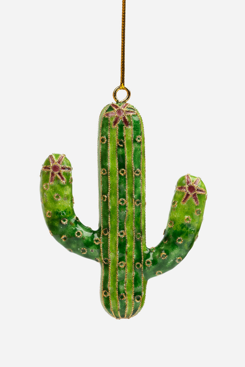 Representing the beautiful arid desert, the Cactus Cloisonne Ornament is a lovely addition to any holiday tree. Created using the classic cloisonne technique, the copper metallic outline is filled with vibrant colored glass paste and then is gold plated for a stunning result. Add this unique touch of the southwest to your holiday decor or hang yea- round to enjoy its breathtaking beauty.