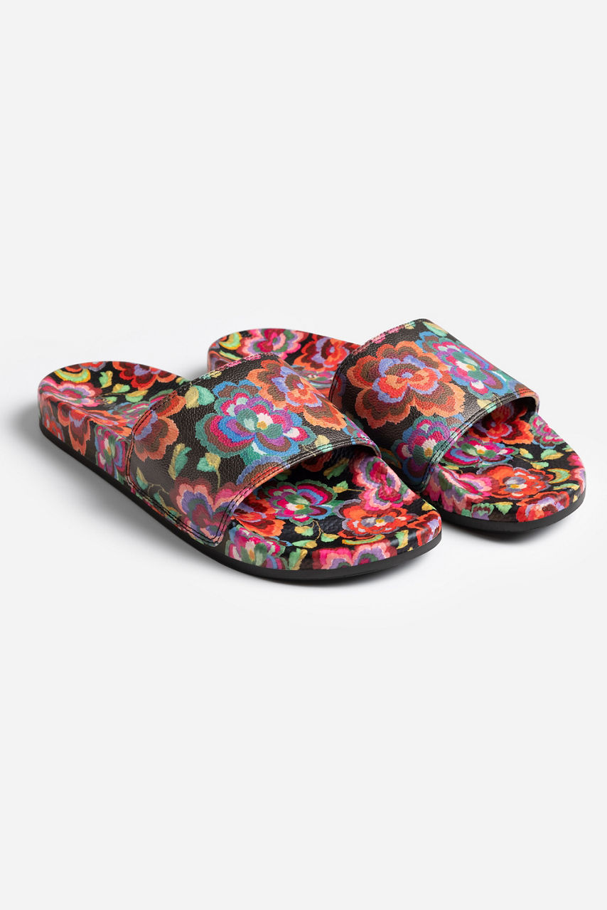 Embellished with vibrant color and fresh florals, the Calanthe Pool Slides add a splash of color to your poolside ensemble. Featuring a molded footbed and wide strap, these unique slides are equal parts comfort and class. Pair with coordinating swimwear and a raffia bag for a resort-ready look.