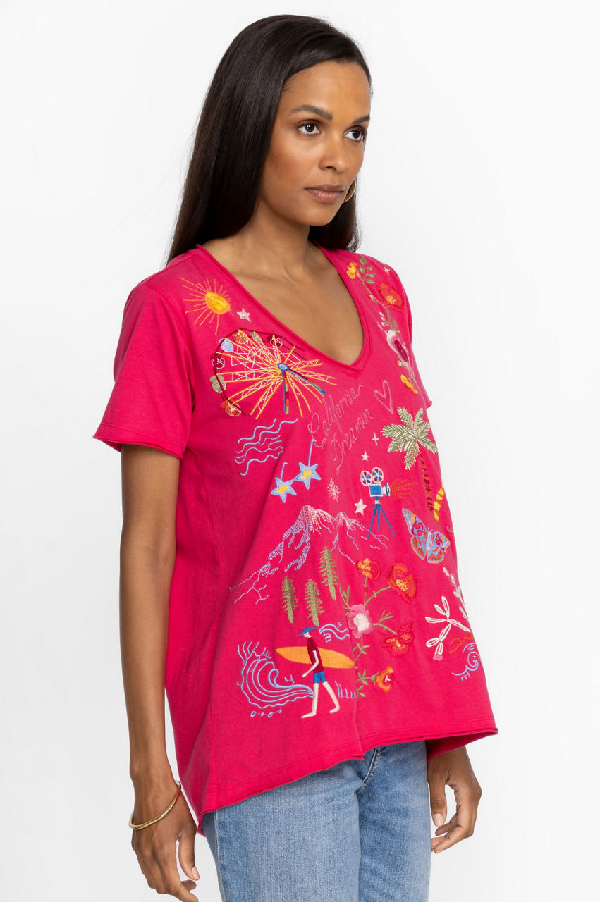 The California Everyday Tee is a whimsical homage to all the Golden State has to offer. Spun from 100% cotton, this tee features an array of festive placement embroidery depicting Cali-centric motifs, from the deserts to the shore. With endless ways to wear, try it layered over colorful swimwear for a day at the beach or paired with denim for an everyday casual look.