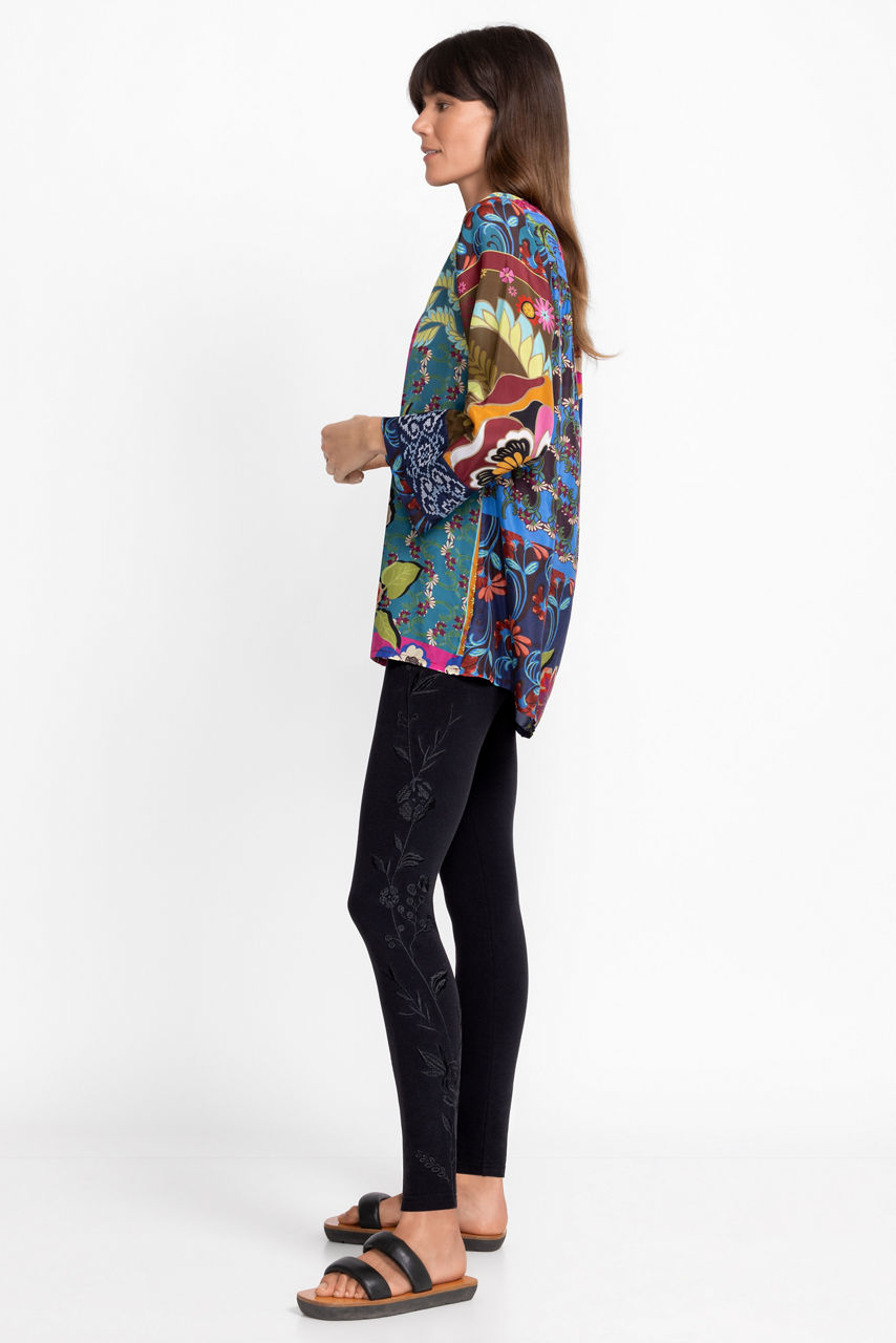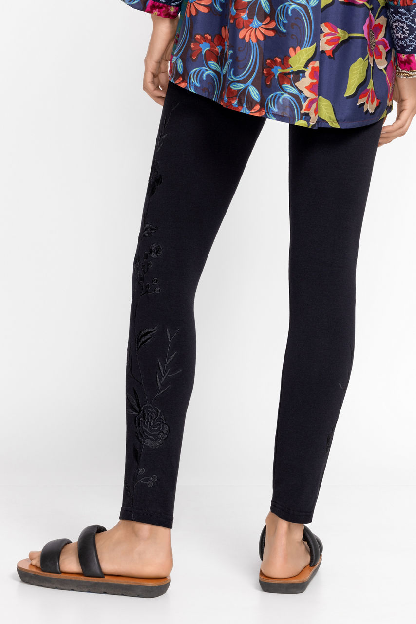 Offering an intricate touch to classic black leggings, the Calipso Tonal Leggings add unexpected detail and whimsy. Crafted from a cotton fabric with a hint of stretch, these leggings feature a comfortable elastic waistband and eye-catching placement embroidery. Pair with a white linen button-down and a denim jacket for a fresh take on casual Friday.