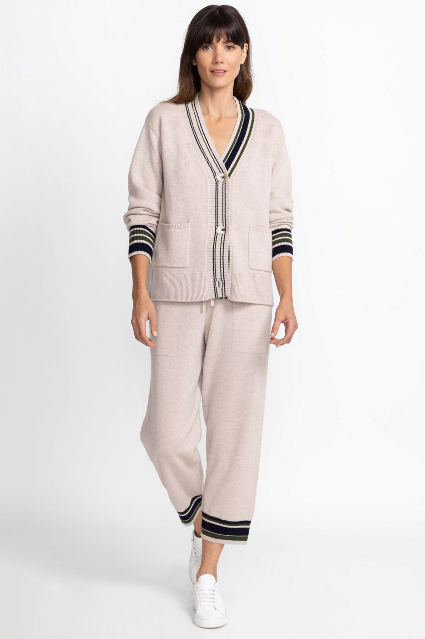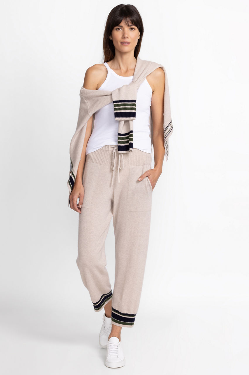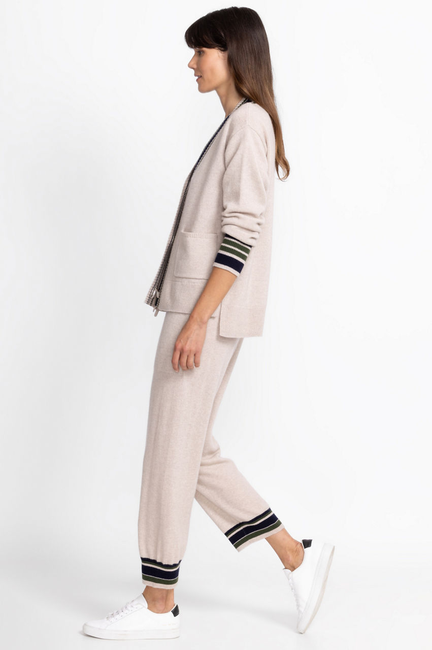 Providing a modern take on luxurious comfort, the Calme Mixed Stripe Pant is a masterclass is stylish loungewear. Crafted from a cozy wool and cashmere blend, these relaxed fit pants feature a drawstring waist, deep front pockets, and cuffed ankles for a satisfying fit. Pair with the Calme Mixed Stripe Cardigan and your favorite tee for a weekend in.