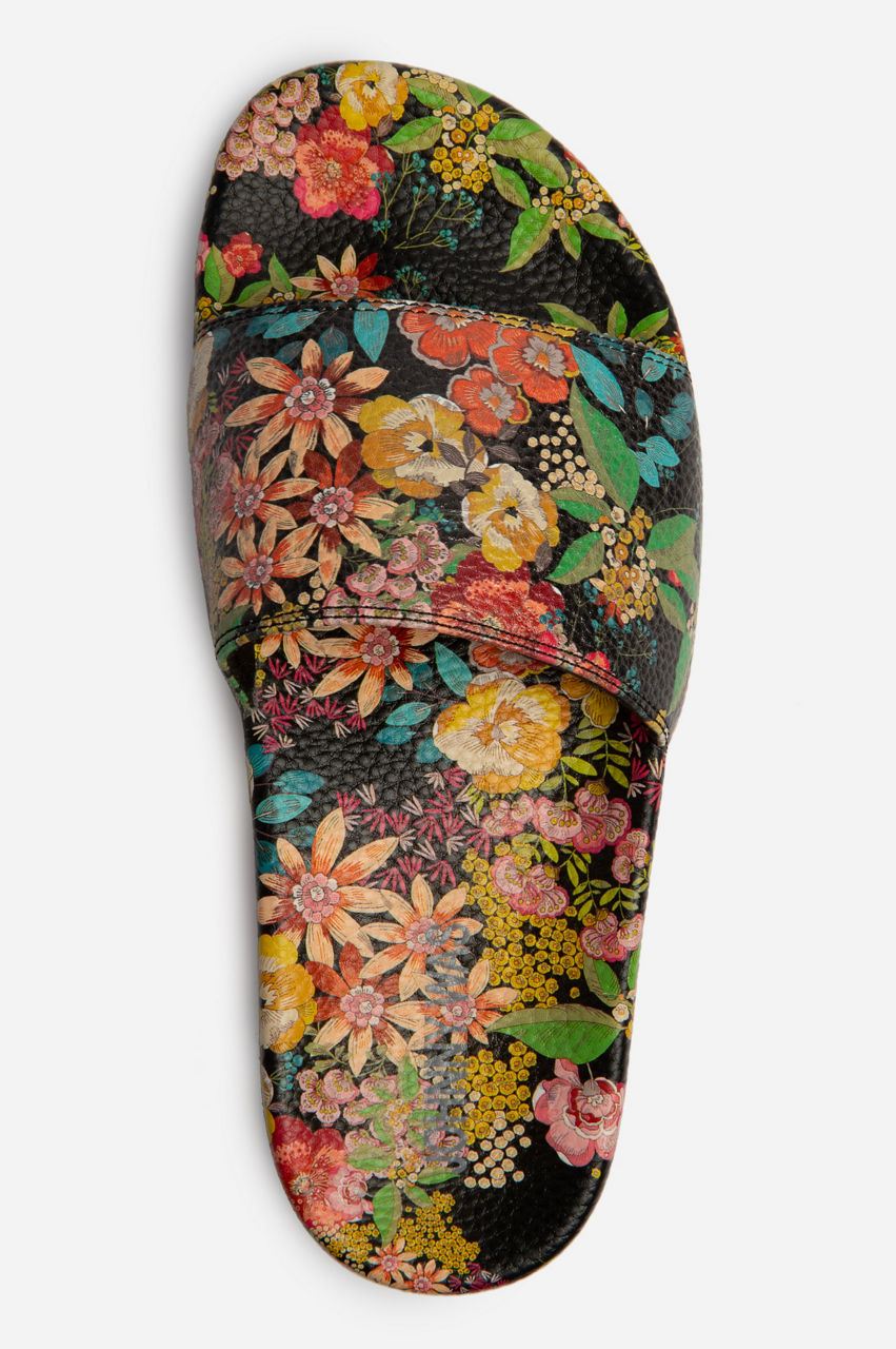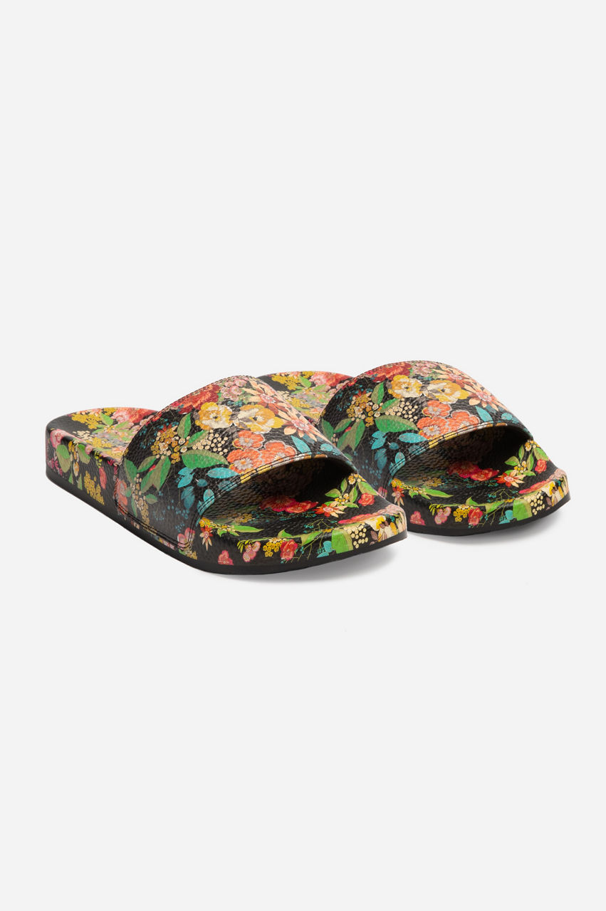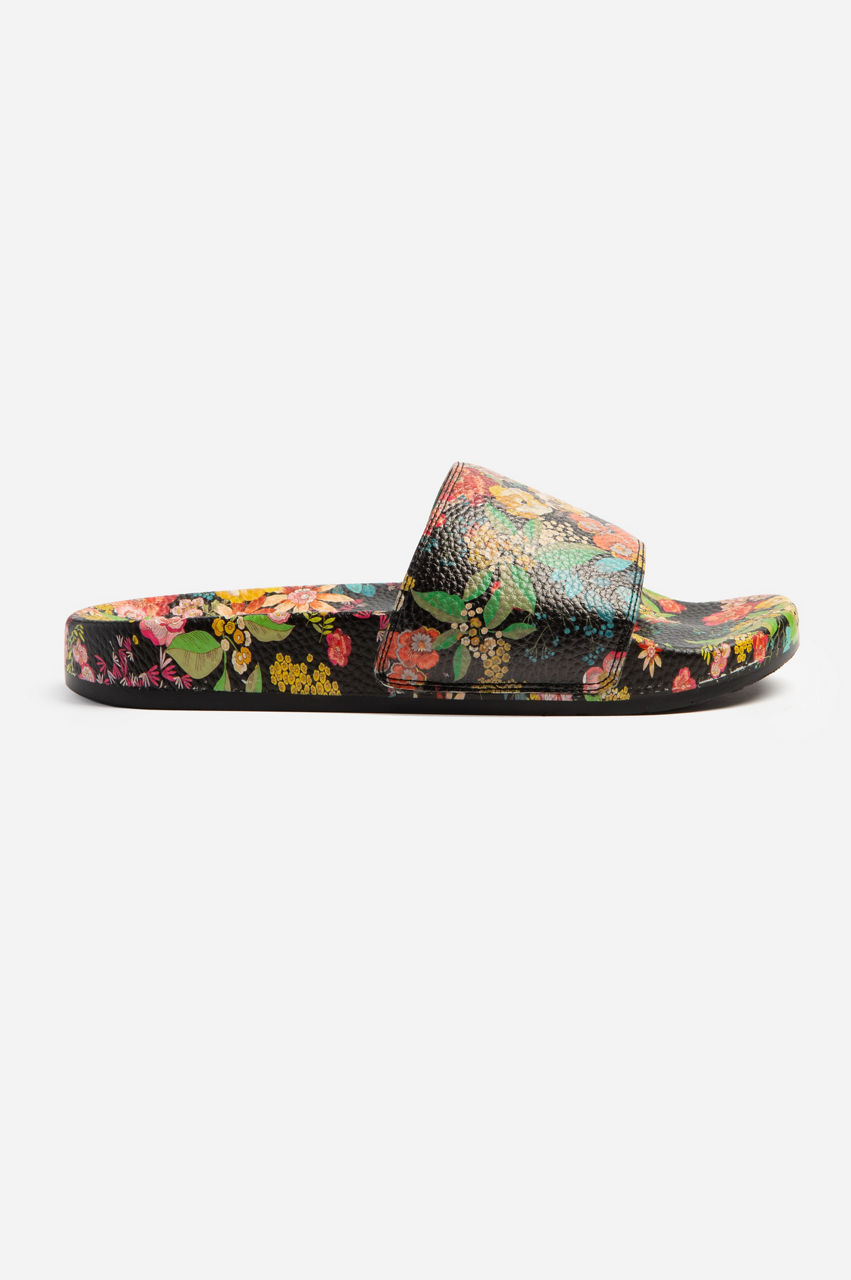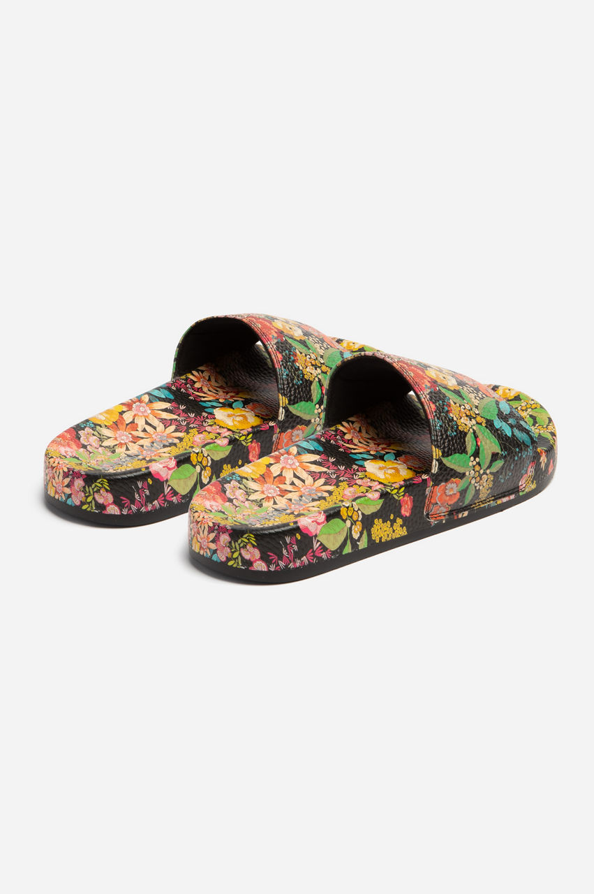Garden-fresh florals enliven the versatile and comfortable Camella Pool Slides. Designed from long-lasting and easy-to-clean rubber, these slip-on sandals are crafted in a vintage color scheme and are finalized with a round toe and a strap across the front. Wear these slides with floaty beach dresses or a tee and shorts on the next excursion.