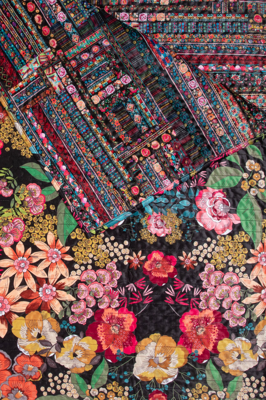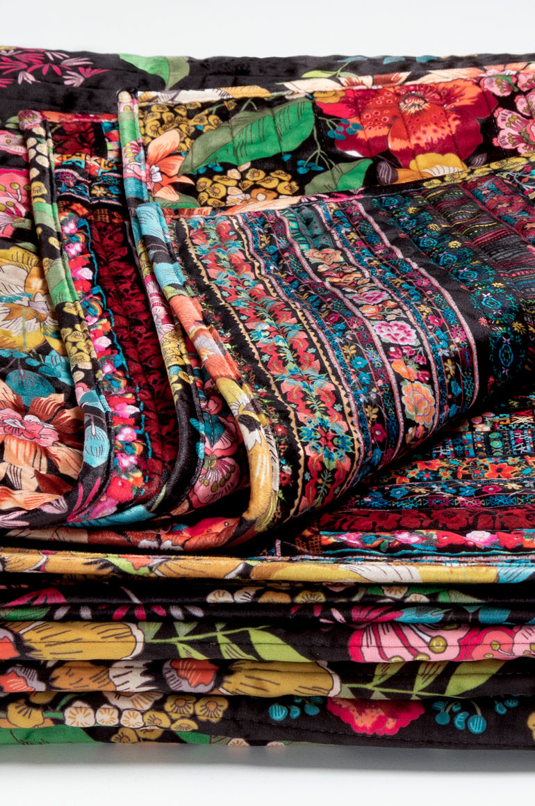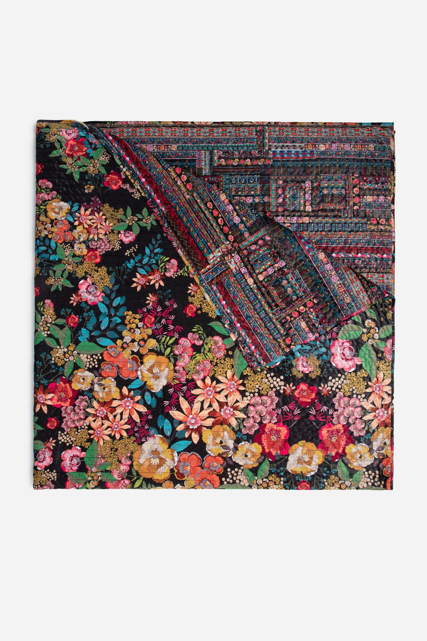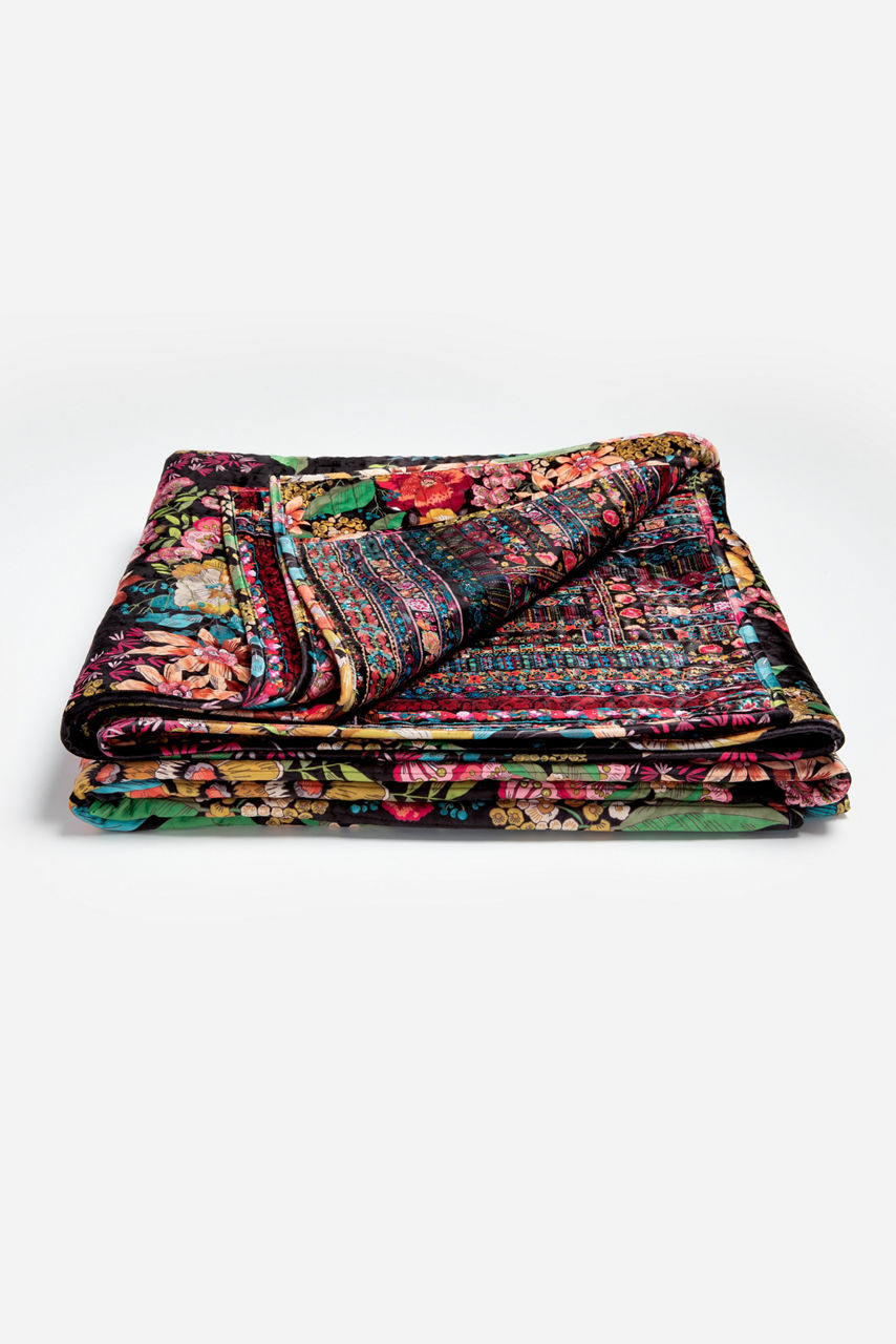 "With its beautiful floral motif, our Camella Quilted Blanket is a gorgeous addition to any home d cor. Pile on an assortment of our Velvet pillows for the utmost in comfort and boho luxury.