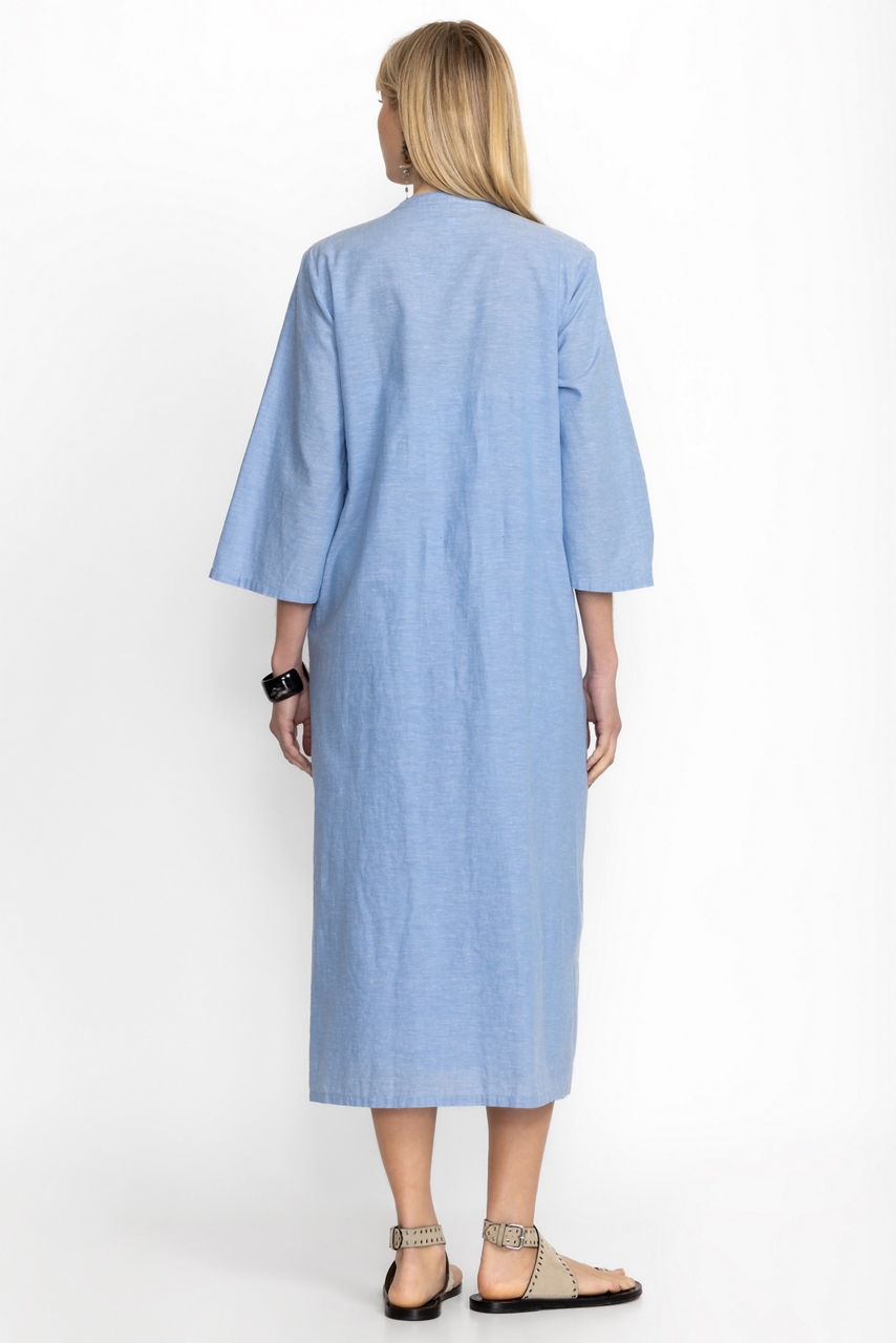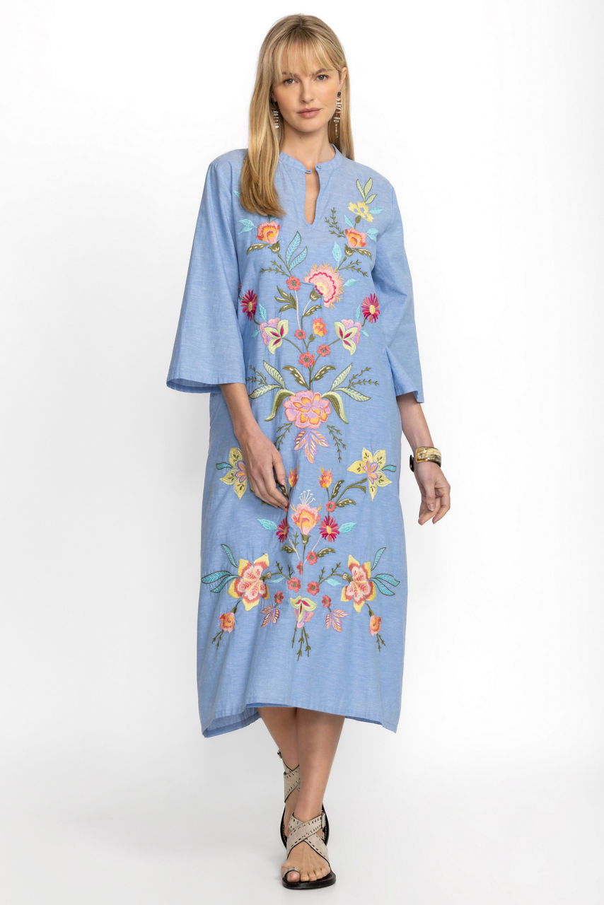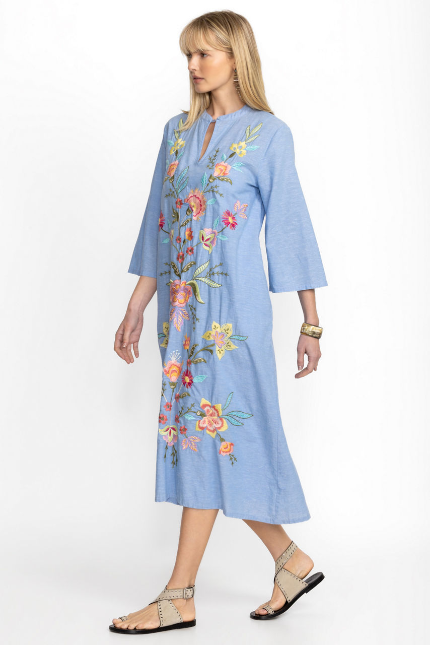 Offering a bold display of brilliant blooms, the Camellia Mandarin Collar Dress is the perfect example of elevated casual wear. Crafted from 100% cotton and beautifully embellished with an array of colorful embroidered bouquets, this dress features a mandarin collar and pockets at the sides. Pair with easy leather slides and simple jewelry for a modern classic look.