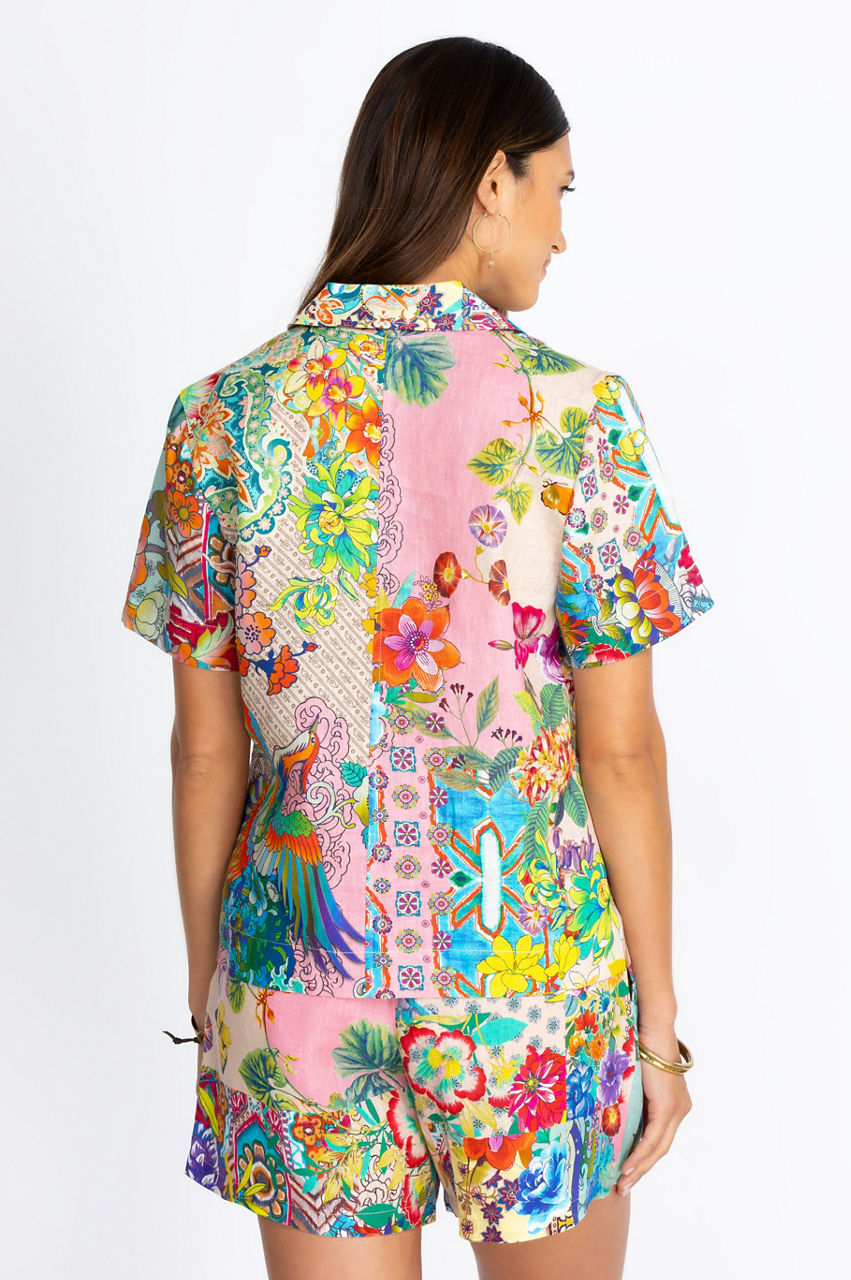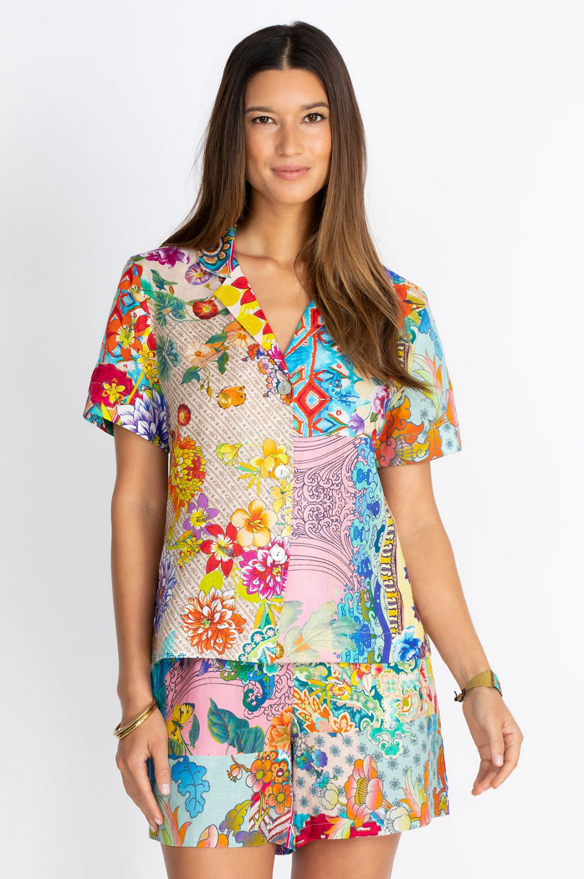 With its specialty fabrics, impeccable design and flattering construction our Dreamer Camp Shirt is sure to be the wardrobe staple you ll adore this season and many seasons to come. This top is perfect for warm days spent in the mountains, in the shops around town, or on your girls' night out. This piece is sure to make a statement, whether you wear it with your favorite skinny jeans or leggings.