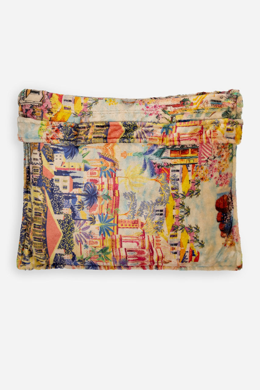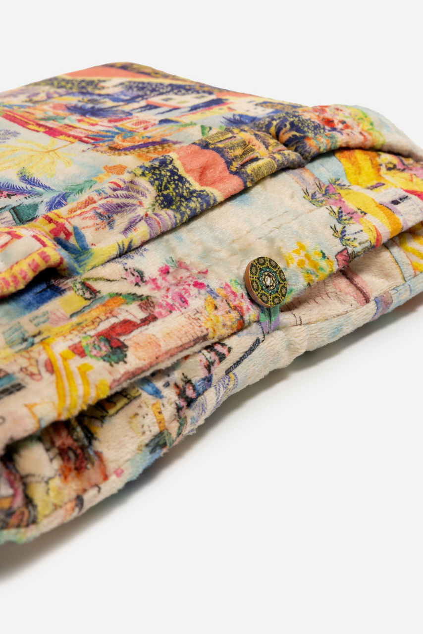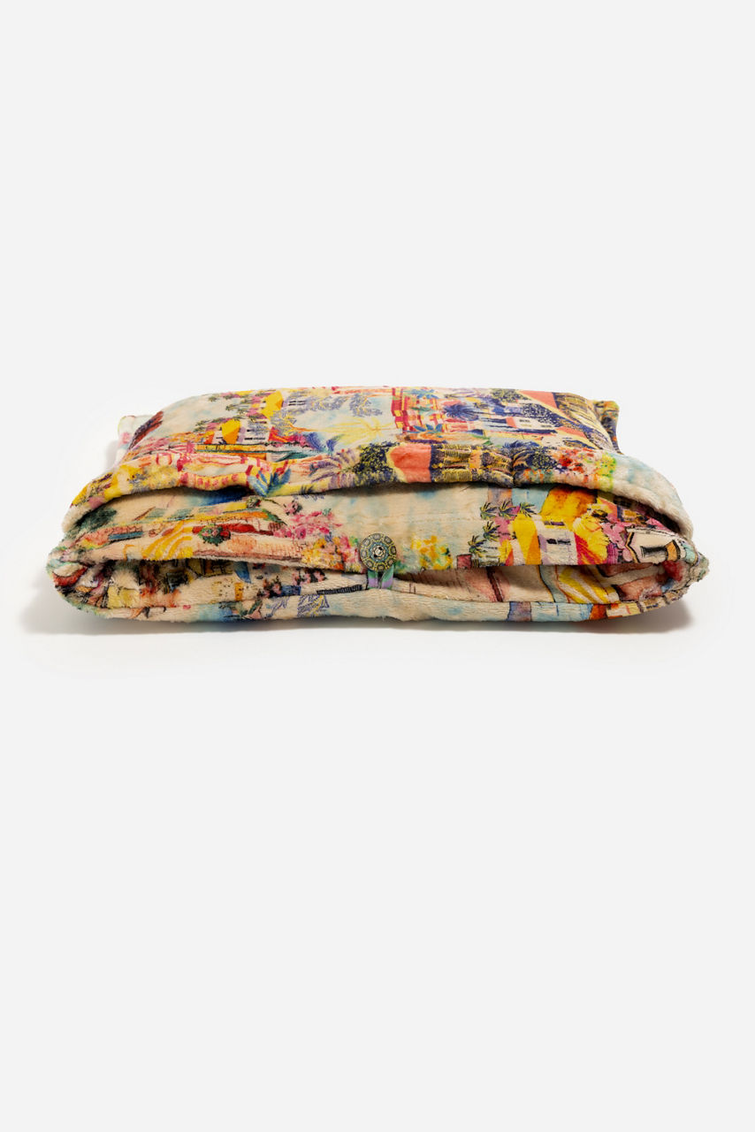Beautifully embellished with splashes of bold color and vibrant florals, the Cannes Travel Blanket is perfectly packable. Featuring two unique designs, this lightweight travel blanket is fully reversible and can be easily folded into an attached pocket. Add to your travel carry-on or beach tote for an additional layer of warmth.