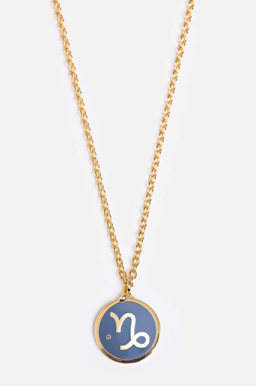 Add some Bohemian sparkle to any outfit with our Capricorn Reversible Pendant Necklace. This piece is crafted from enamel and brass and brilliantly shows off your Capricorn roots. Wear this necklace with a casual outfit, like jeans and a relaxed tee, or with a sophisticated outfit, like an artisan-inspired jumpsuit and heels.