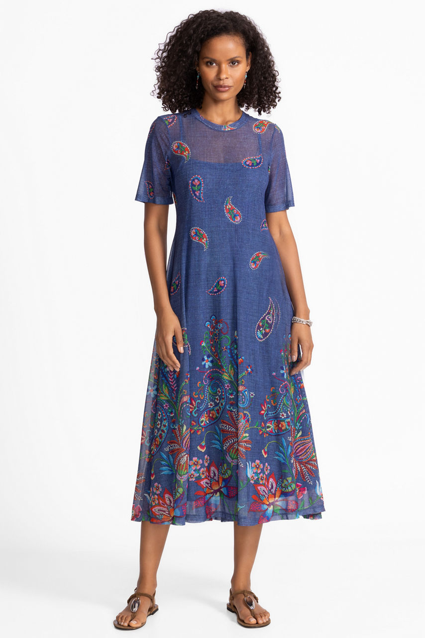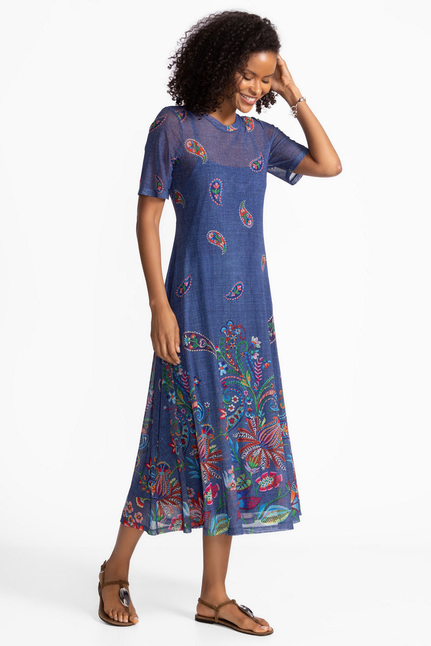 The Carlie Mesh Tee Dress is crafted from a lightweight semi-sheer fabric embellished with an intricate floral pattern. Featuring a rounded neckline and short sleeves, this slip-lined dress is finished with a flowing A-line silhouette. Pair with wedge heels and delicate jewelry for a fresh look perfect for the warmer season.