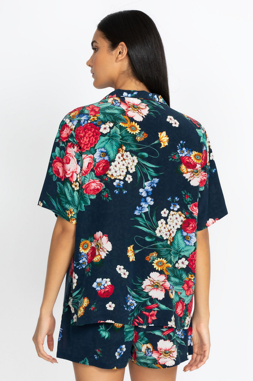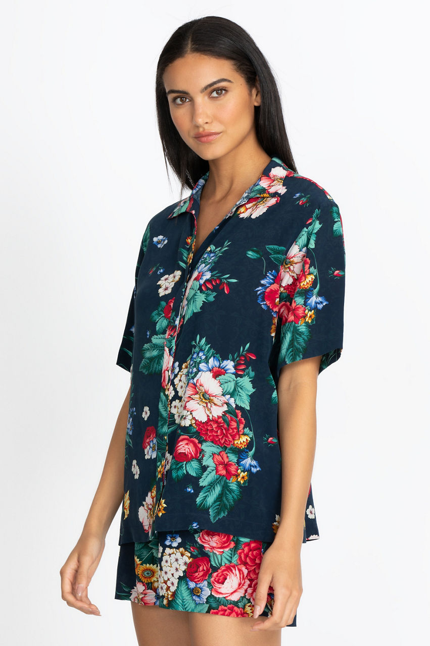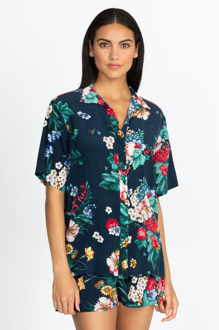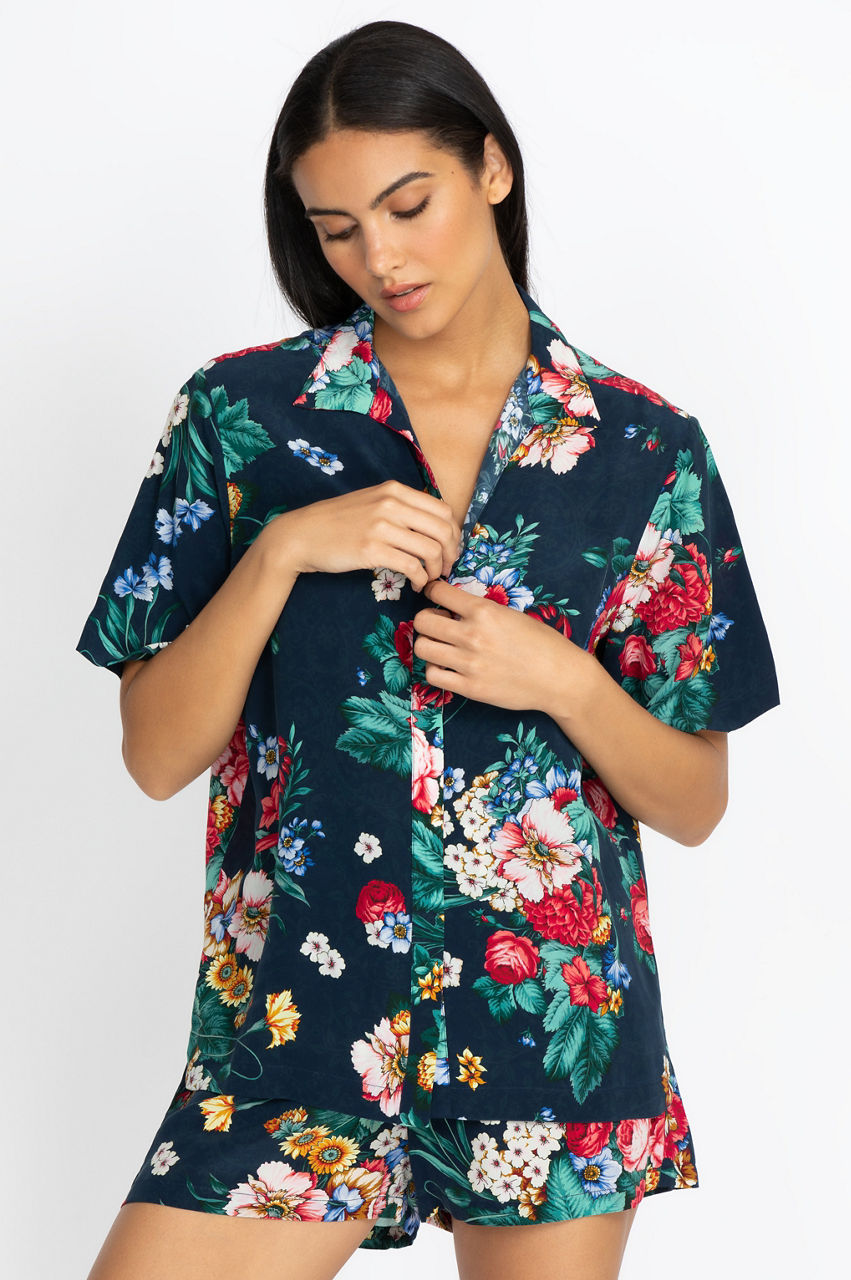 Sleep or lounge in style with this vibrant short set. The Sistine Carolyne Short Set features high-quality washed Crepe de Chine silk to bring out the exceptional colors of the motif. You re going to love relaxing in this chic top and bottom set, thanks to its relaxed fit. You can wear this short set by itself or layer it with a comfortable robe or kimono.