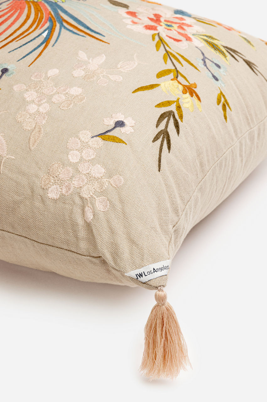 Evoking feelings of calm and serenity, the Ceretti Linen Embroidered Pillow makes a case for stylish interior decor. This pillow is designed from breathable and durable linen and boasts a colorful embroidery comprising elegant florals, an invisible zipper, and tassels for a luxe finish. Throw this pillow onto an armchair or use it in the bedroom to create a cozy vibe.