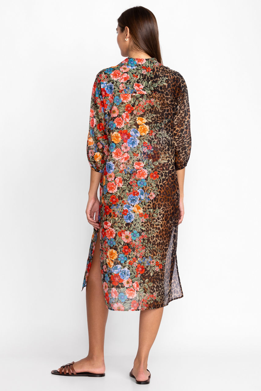 A vacation favorite, the Cheetah Long Shirt Dress is a practical beach staple that doesn't compromise on style. This shirt is made from a breathable cotton silk blend with a selection of vibrant flowers scattered across the front and back. This shirt dress can be worn open with a tank and jeans or a bikini for a nonchalant finish.
