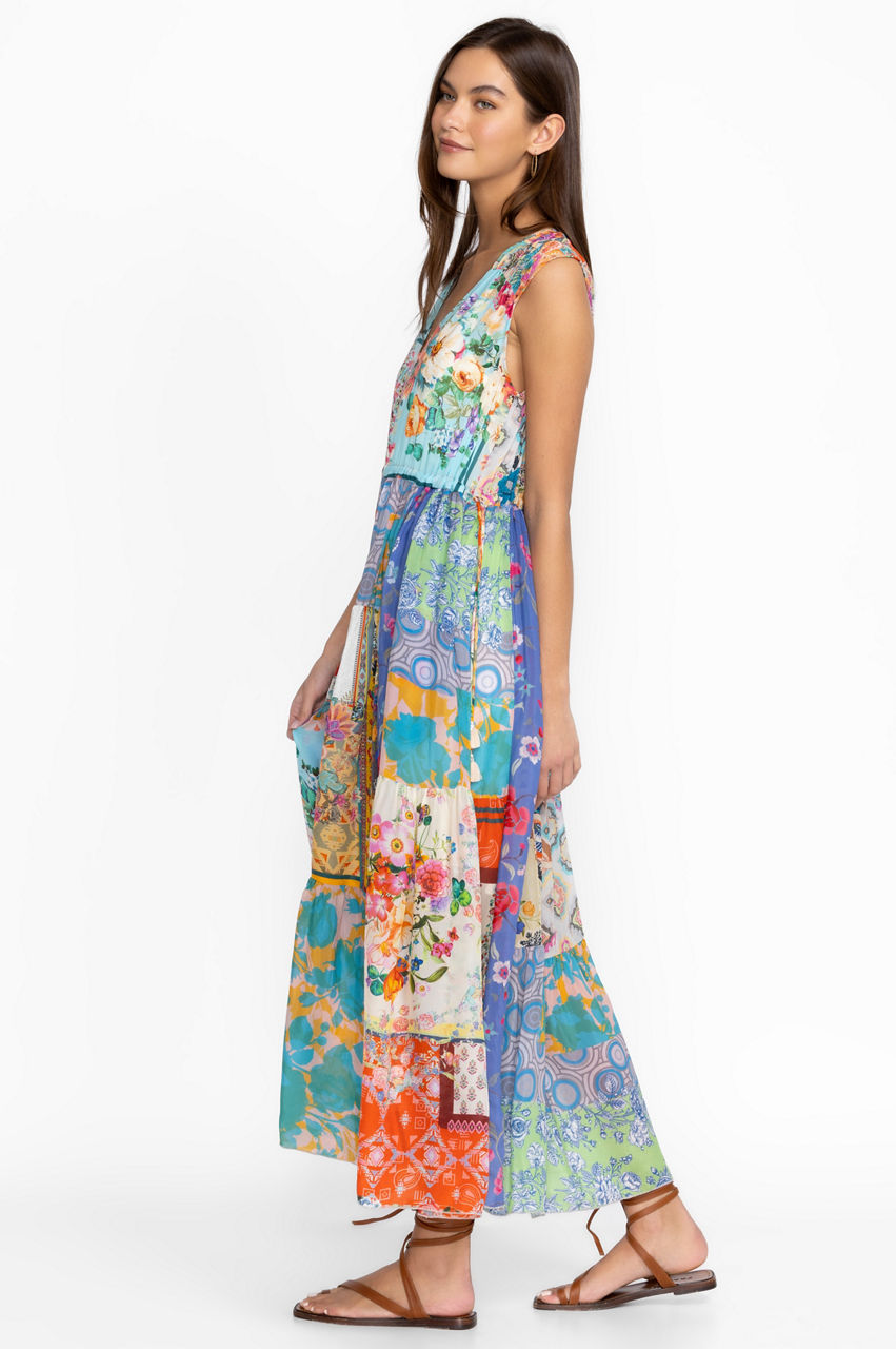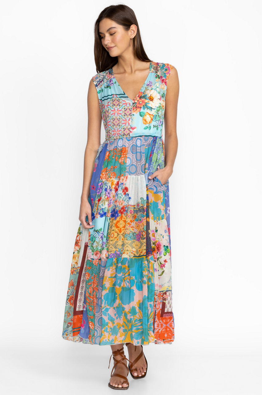 Take your warm-weather wardrobe in a feminine direction with the eye-catching Cherika Natania Dress. Perfect for garden parties and brunch with friends, this dress falls to a midi length that flares out at the hem and embodies a 50s charm complete with a flattering V-neck, tassels at the sides, and a vivid floral patchwork print. Style this dress with sandals or heels for an effortless occasion look.